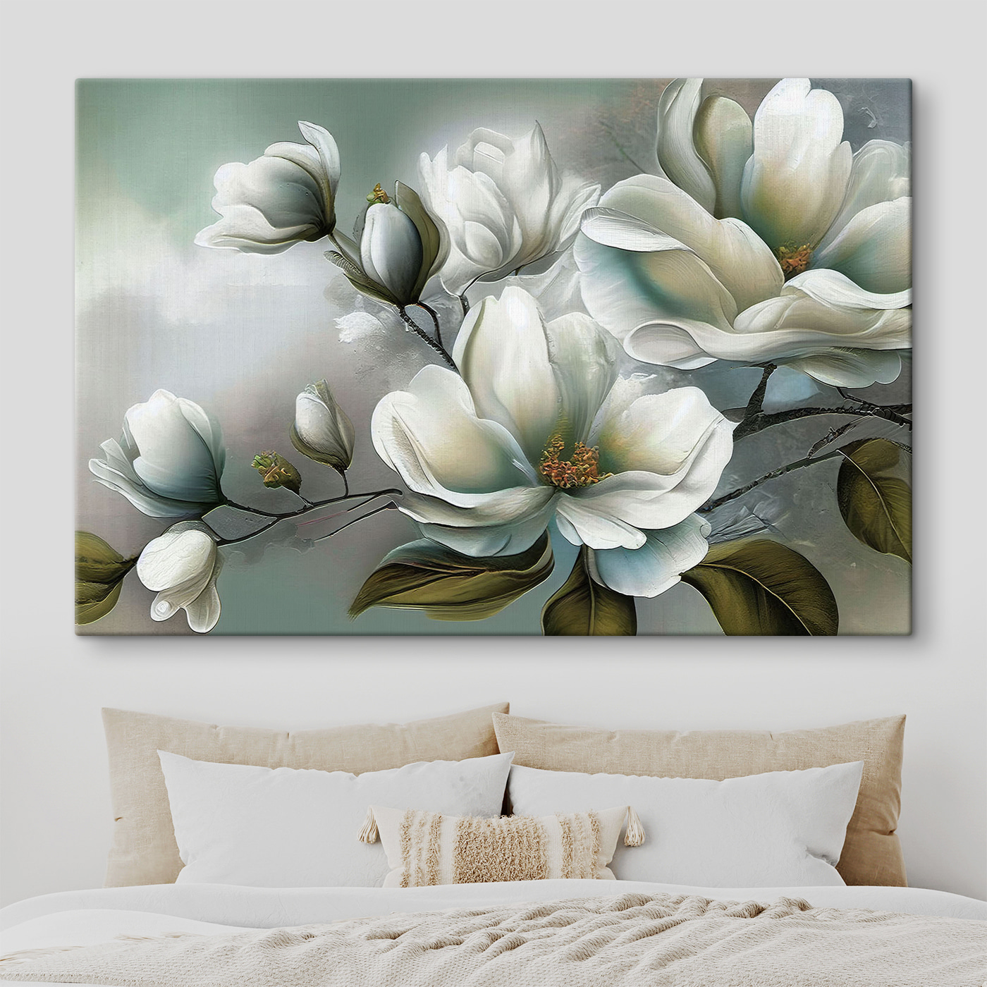 Imaginez ceci : vous êtes assis sur votre canapé, votre boisson préférée à la main, et il y a ce magnifique tableau de fleurs blanches accroché à votre mur. C’est le mélange parfait de calme et d’élégance qui transforme n’importe quel espace en une oasis de sérénité. Cette impression sur toile donne l’impression que quelqu’un a pris un pinceau doux et a balayé la sérénité d’un jardin matinal directement sur le tissu. Les larges pétales, si vivement peints, semblent presque touchables !