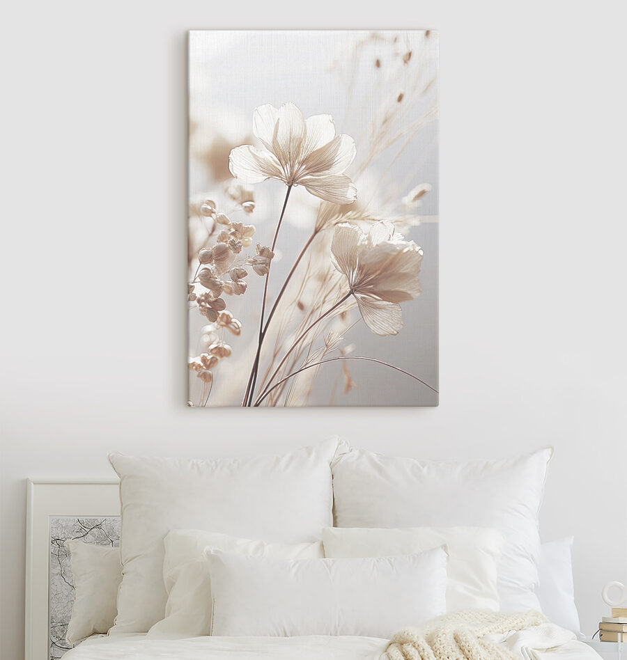 Imaginez que vous entrez dans une pièce et que vous êtes accueilli par une scène tout droit sortie d’un rêve éveillé. C’est exactement ce que fait l’œuvre “Tableaux Delicate Flowers Bathed in Sunlight” (Impressions sur toile – Fleurs délicates baignant dans la lumière du soleil). Des blancs doux et crémeux et des pétales doux et chuchotants captent la lumière juste comme il faut – on a presque l’impression de pouvoir les toucher. Parfait pour un endroit où vous souhaitez apporter une touche de nature à l’intérieur sans avoir à vous soucier de l’arrosage, vous savez ?