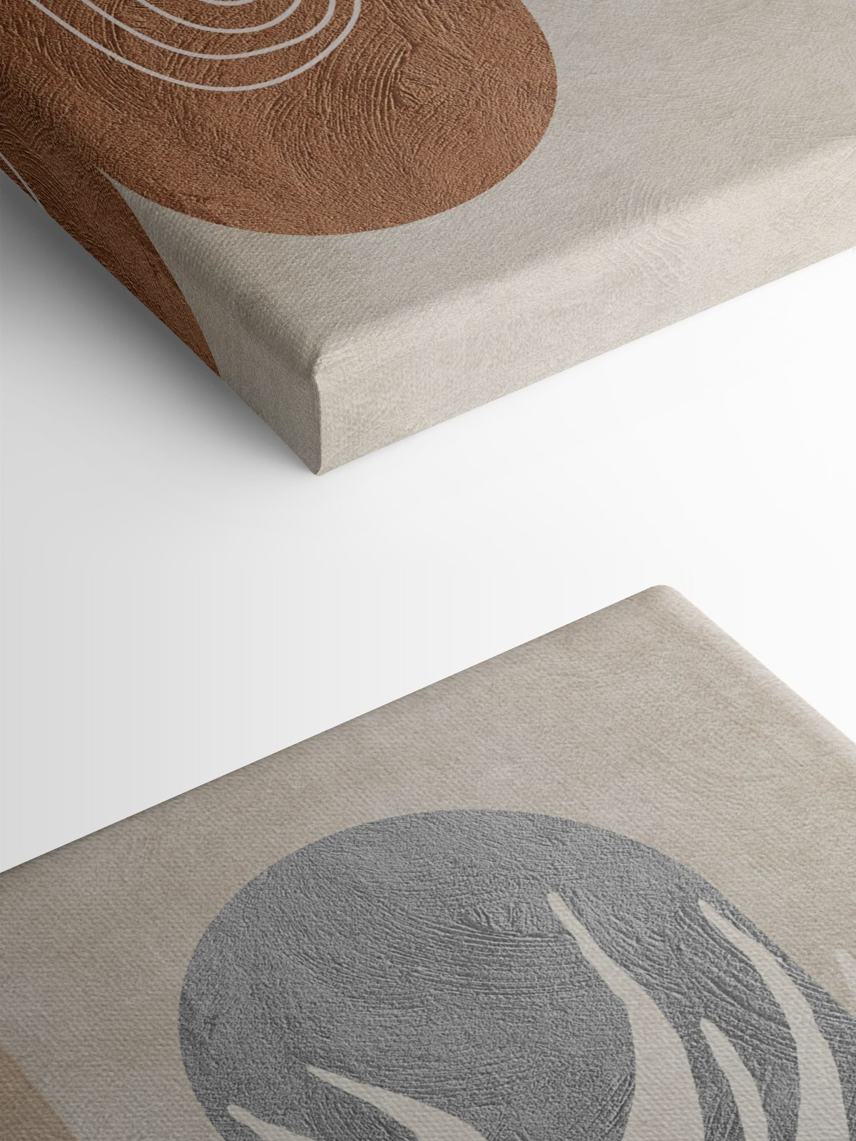 Pensez à l’accrocher dans votre salon, peut-être juste au-dessus du canapé, là où la lumière naturelle arrive à point nommé. Vous pourriez vous prélasser avec une tasse de café, apercevoir ces motifs apaisants du coin de l’œil et ressentir ce petit changement d’humeur. C’est à la fois terreux et moderne, sans effort et accrocheur. Et honnêtement, qui n’aime pas une œuvre d’art qui peut vous faire sentir chic et décontracté à la fois ?