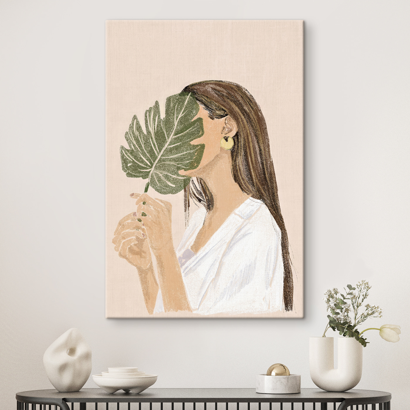 Cette charmante impression sur toile, représentant une femme gracieuse tenant une belle feuille, ajoute une touche délicieuse à n’importe quelle pièce. Avec ses couleurs douces et ses lignes légères, elle est comme une bouffée d’air frais, apportant un sentiment de calme et de nature à l’intérieur. Imaginez cette pièce adossée à votre mur, inspirant sans effort les conversations autour d’un café ou créant simplement l’ambiance de soirées douillettes à la maison. Il est parfait pour les moments où une touche d’élégance et un soupçon de fantaisie sont nécessaires à l’espace. De plus, qui n’aime pas un peu de vert dans sa vie ?