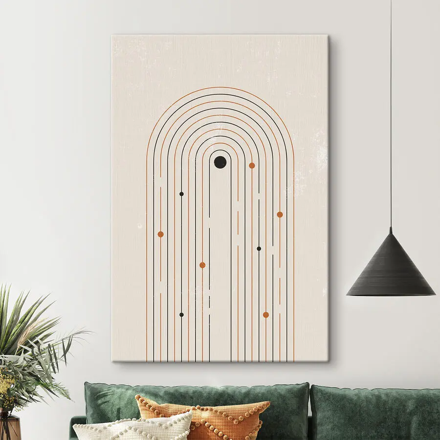 Voici “Black and Orange Lines and Dots”, une toile aussi intrigante qu’elle en a l’air. Imaginez-la accrochée dans votre salon. Soudain, alors que vous recevez quelqu’un, celui-ci vous dit : “Wow, c’est quoi ça ?”. Vous haussez les épaules avec désinvolture, comme si vous n’étiez pas conscient du chef-d’œuvre qui orne votre mur. Les lignes rythmées et les points ludiques attirent le regard, ajoutant une touche de curiosité et un soupçon de sophistication. C’est comme une histoire sans paroles, qui stimule l’imagination. Parfait pour les endroits qui ont besoin d’une touche artistique. De quoi alimenter les conversations !