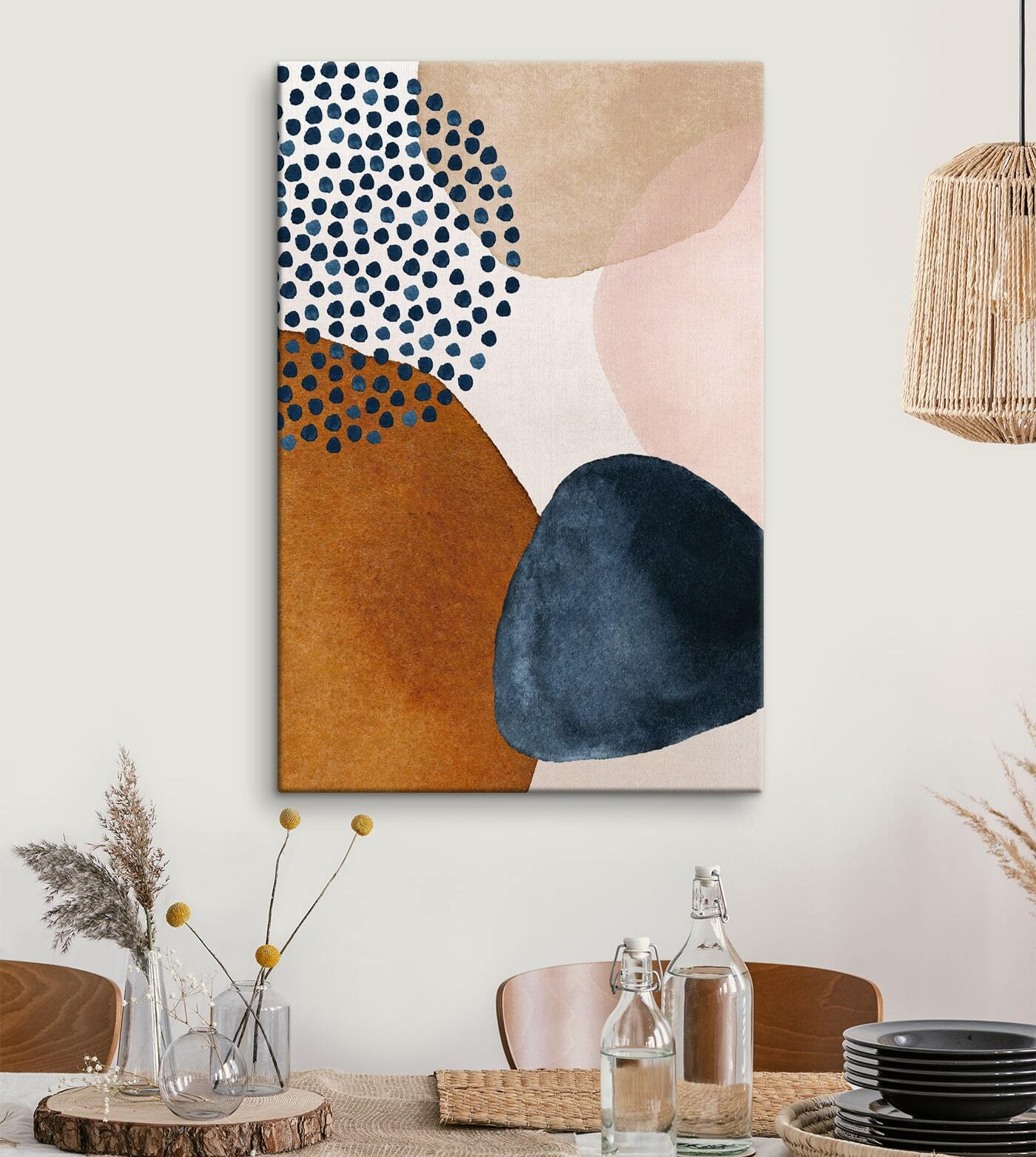 Vous avez déjà eu l’impression que vos murs avaient besoin d’un petit quelque chose ? Cette impression sur toile pourrait bien être ce qu’il vous faut. Le motif “formes abstraites et points” a l’air chic, n’est-ce pas ? Il s’agit d’un style bohème et décontracté, avec une touche de charme moderne. Parfait pour ces coins douillets ou peut-être même au-dessus du canapé – n’importe où !
