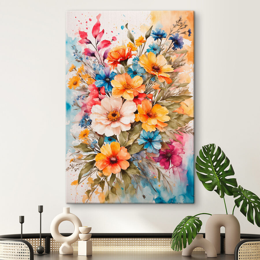 Bonjour, amoureux des fleurs ! Imaginez que vous entrez dans une pièce et que vous êtes accueilli par une explosion de fleurs vibrantes, peintes avec le genre d’amour et d’art que seule l’aquarelle peut apporter. Cette impression sur toile est comme un bouquet qui ne se fane jamais, rempli d’oranges chauds, de bleus apaisants et de roses doux. Il est parfait lorsque vous voulez que votre espace ait l’air printanier tout au long de l’année. L’ambiance bohème est décontractée mais riche en détails, ce qui en fait un ajout fantastique à tout coin douillet ou espace de vie animé. Honnêtement, c’est comme si vous aviez un mini jardin sur votre mur. Parfait pour rêvasser !