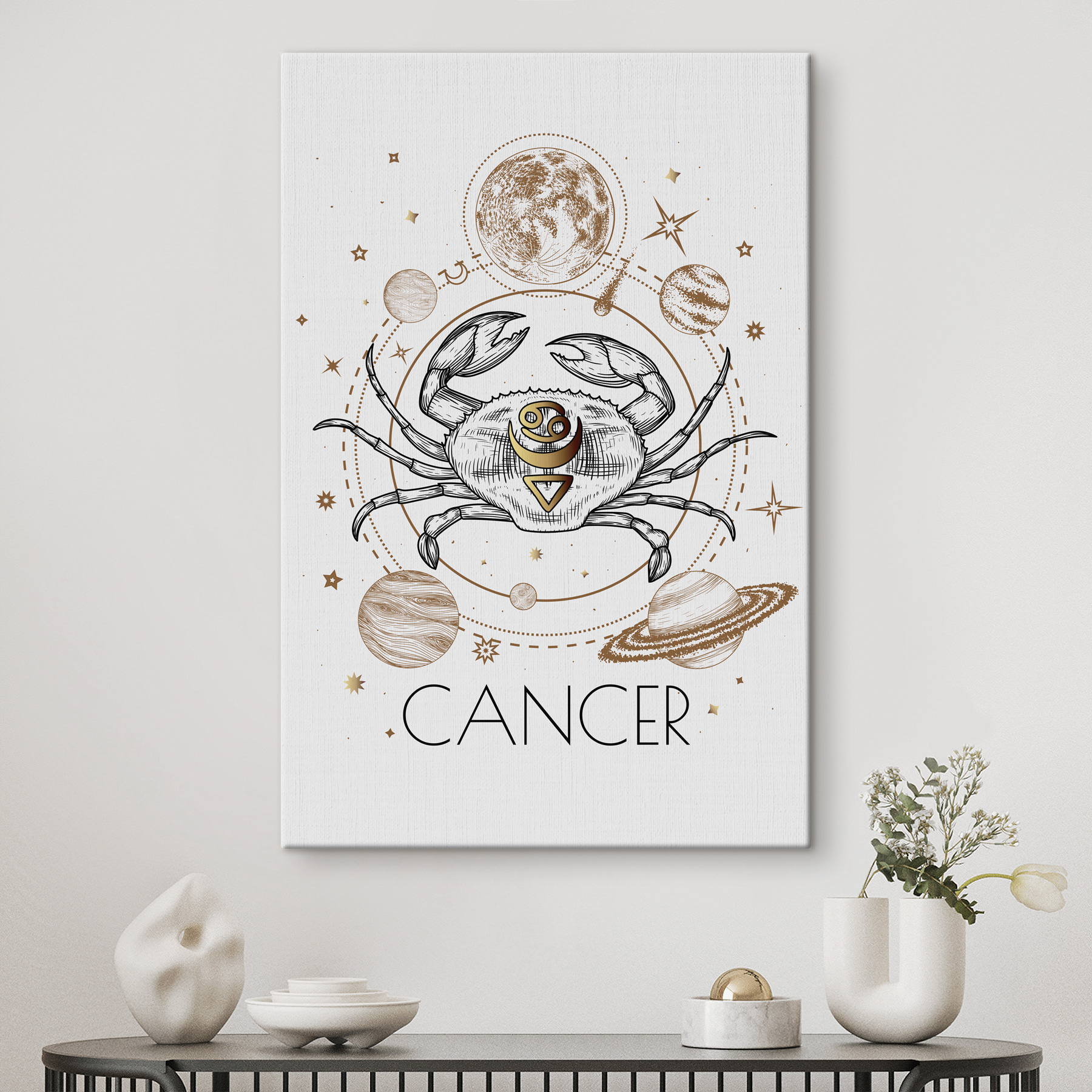 Faites entrer le cosmos dans votre espace avec cette impression sur toile enchanteresse représentant le signe du zodiaque du cancer entouré de planètes ludiques et d’étoiles scintillantes. C’est comme si vous aviez un petit morceau de l’univers sur votre mur, invitant la chaleur et l’imagination dans votre maison. Le charmant crabe vous rappelle la loyauté et la créativité, ce qui en fait un sujet de conversation idéal pour les amis ou une présence réconfortante pour les soirées tranquilles. Que vous soyez Cancer ou que vous aimiez simplement observer les étoiles, cette pièce ajoute une touche unique, parfaite pour les ambiances bohèmes et minimalistes. Qui ne voudrait pas se blottir dans sa propre galaxie ?