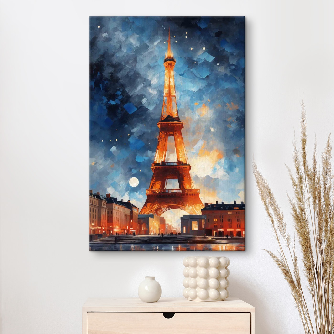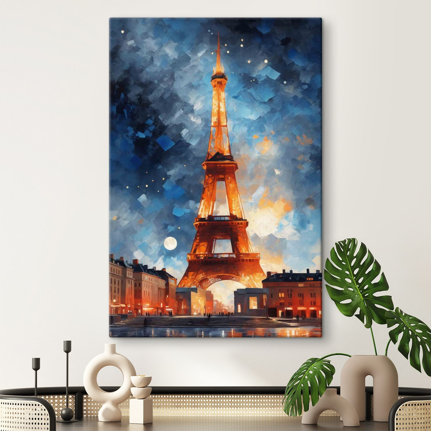 Imaginez un peu : vous êtes assis chez vous, en train de siroter votre thé du soir, et juste devant vous se trouve cette superbe impression sur toile d’une tour illuminée par le ciel nocturne. C’est comme si quelqu’un avait capturé un moment où la tour avait décidé de porter sa tenue de soirée fantaisiste et scintillante. Les bleus profonds et les lumières chaudes apportent une touche de magie à tout espace. Pensez-y comme à une fenêtre sur un autre monde où l’air est vivifiant et plein de possibilités. Parfait pour cet endroit de votre salon qui ne demande qu’à être rehaussé d’un petit facteur “wow”. Vous vous perdrez dans son charme chaque fois que vous y jetterez un coup d’œil, rêvant peut-être de contrées lointaines.