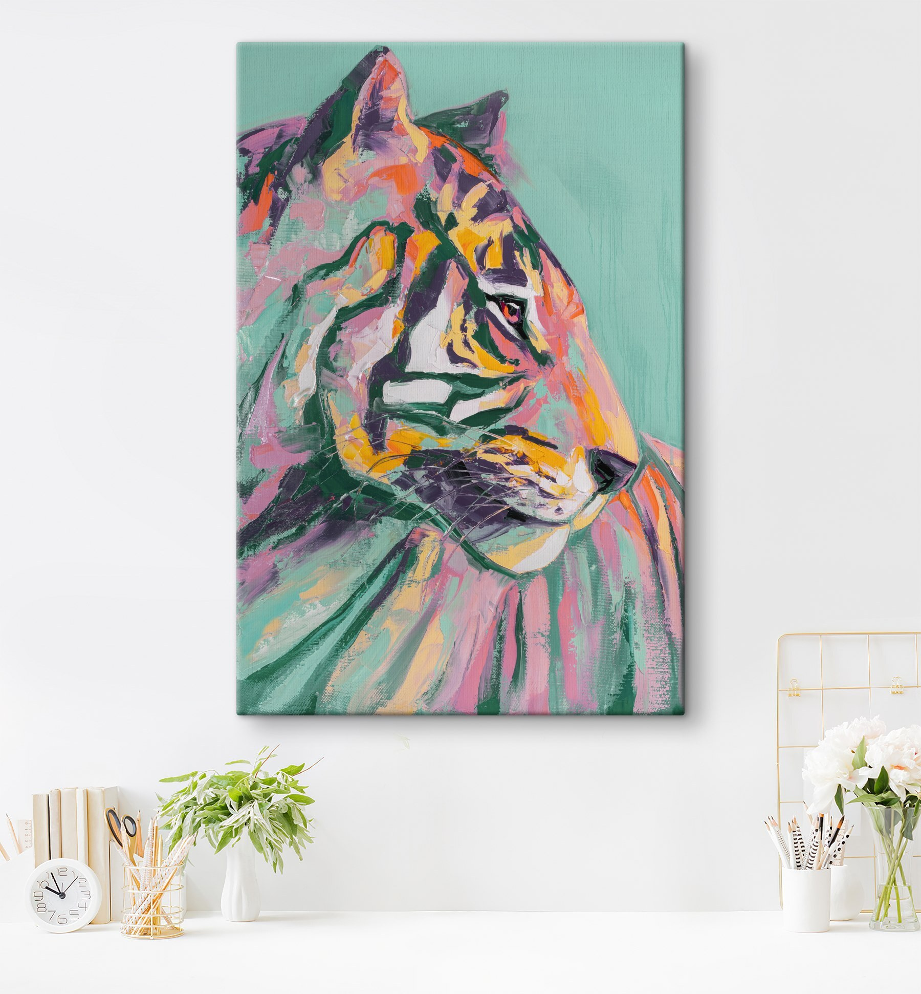 Imaginez ceci : une explosion de couleurs vibrantes formant le visage majestueux d’un tigre, se prélassant sur votre mur. Cette impression sur toile n’est pas seulement de l’art – c’est un sujet de conversation, une déclaration audacieuse de votre côté sauvage. Parfait pour les amoureux des animaux et les aventuriers dans l’âme. Les coups de pinceau évoquent presque des histoires de jungle, de mystère et de nuits sous les étoiles. Placez-la dans votre salon et regardez-la s’animer silencieusement, captivant les invités avec son regard enchanteur. C’est comme si vous aviez un morceau de nature sauvage à la maison, sans avoir besoin d’une laisse !