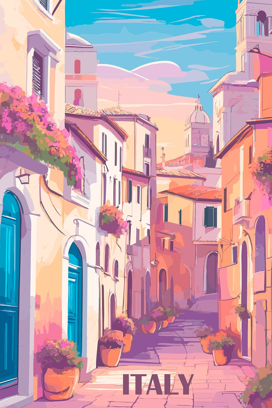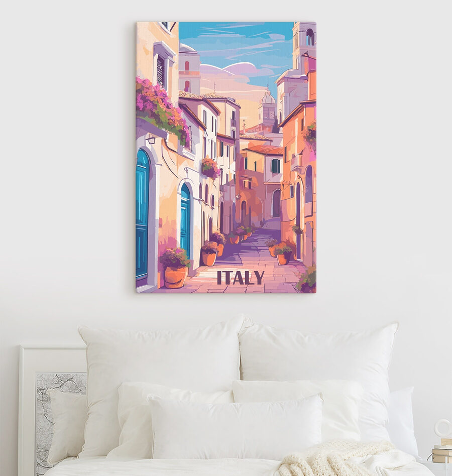 Imaginez : vous vous promenez dans une charmante rue européenne, avec des pavés sous les pieds et des fleurs qui jaillissent de chaque rebord de fenêtre. C’est exactement l’ambiance qui se dégage de cette impression sur toile. C’est comme si vous aviez une petite tranche d’Italie sur votre mur ! Ces couleurs douces – pêche et bleu – sont invitantes, presque comme une étreinte chaleureuse. Idéales pour égayer n’importe quelle pièce, elles évoquent des promenades ensoleillées et des après-midi tranquilles. Imaginez-vous en train de siroter un expresso sous cette œuvre d’art – le bonheur à l’état pur, sans passeport !