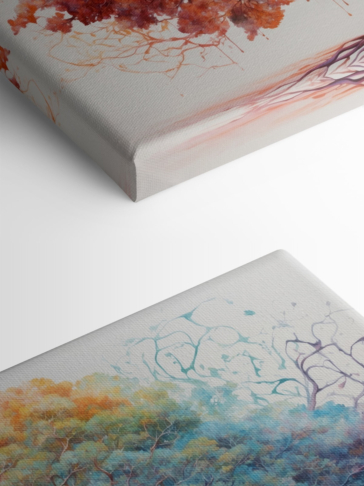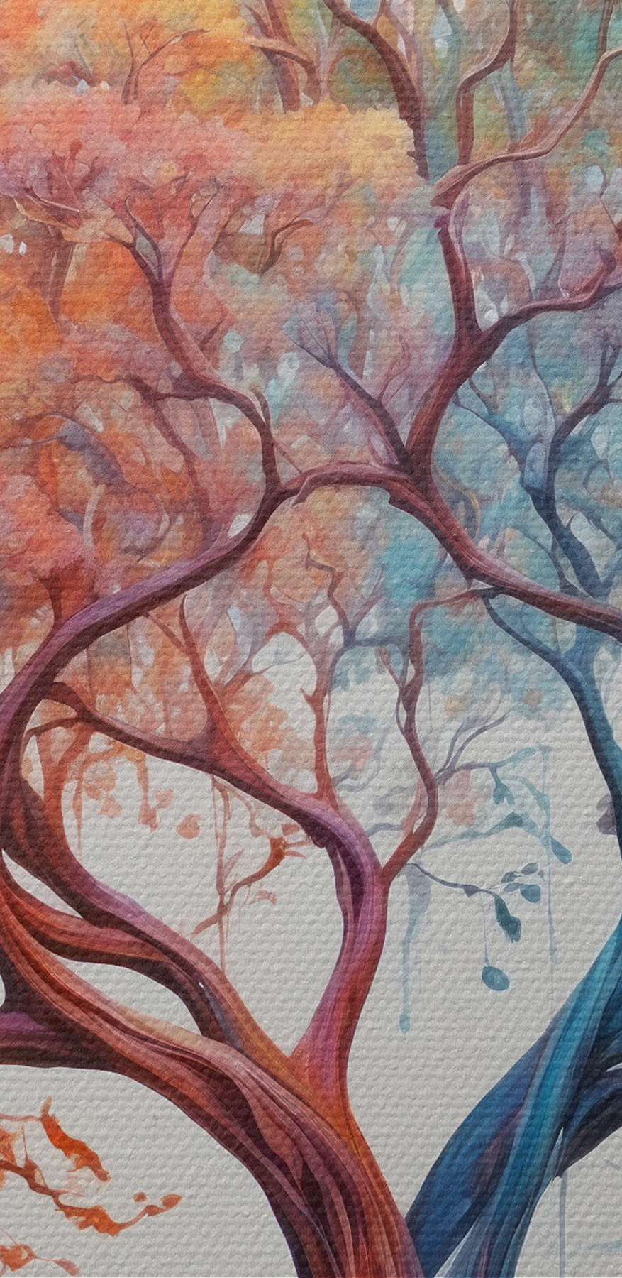 Imaginez cette impression sur toile vibrante accrochée dans votre salon, c’est comme avoir un changement de saison en un coup d’œil ! “L’arbre aux feuilles de différentes couleurs n’est pas seulement une œuvre d’art, c’est aussi une source d’inspiration. Le côté gauche s’illumine de teintes chaudes d’orange et de rouge, comme un jour d’automne confortable, tandis que le côté droit se rafraîchit avec des bleus et des verts tranquilles, évoquant la fraîcheur du printemps.