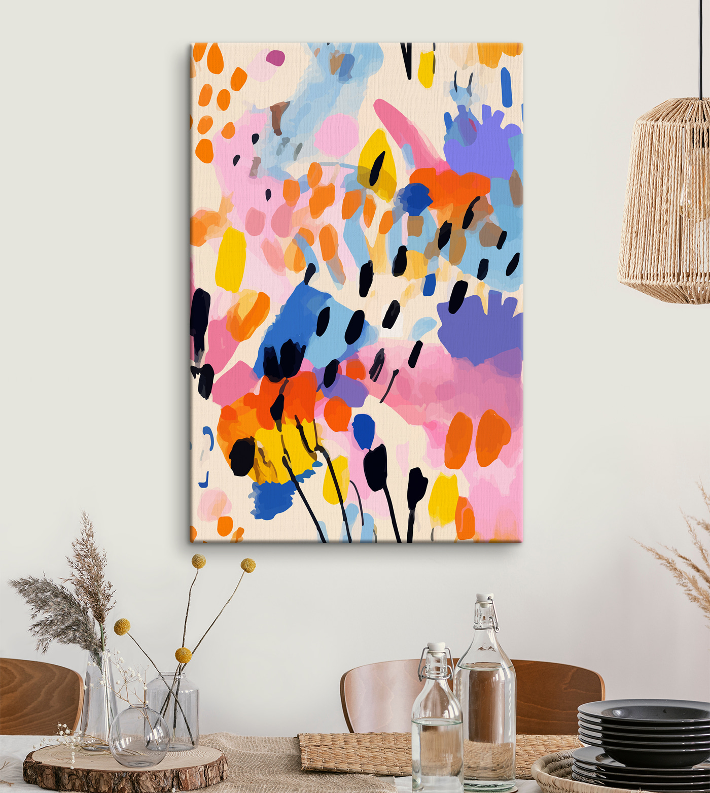 Imaginez que vous posiez cette toile abstraite vibrante sur votre mur – c’est comme si vous déclenchiez un carnaval de couleurs dans votre espace ! Cette impression vivante est faite d’éclaboussures et de touches de teintes vives qui dansent ensemble comme une fête sauvage. Il est parfait pour ajouter une touche d’énergie et donner à votre pièce l’impression qu’elle déborde de créativité. Le mélange ludique de formes et de nuances donne une impression de calme et de chaos, un peu comme un désordre organisé qui est tout simplement amusant à regarder. Ce n’est pas seulement de l’art, c’est une expérience. Que vous sirotiez un café ou que vous vous détendiez, vous trouverez toujours de nouveaux petits détails qui vous feront sourire. Vous aimez engager la conversation ? Cette toile fait parler les gens – c’est une explosion d’ondes joyeuses, parfaite pour tous ceux qui apprécient une touche d’inattendu dans leur décor.