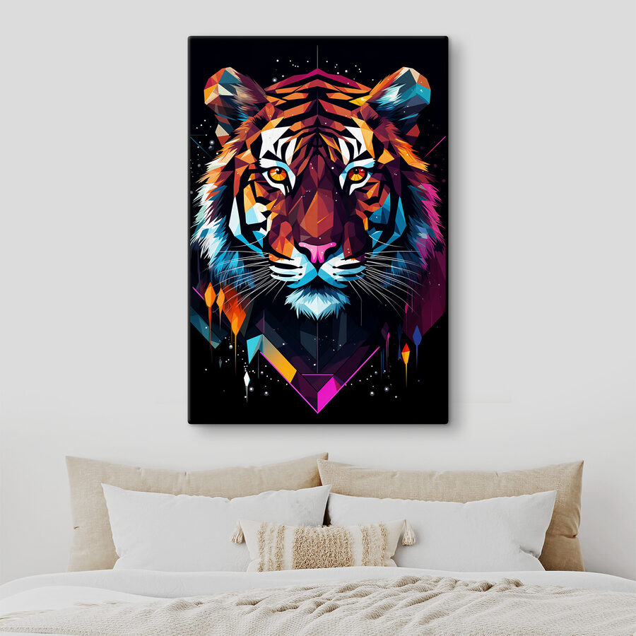 Si vous êtes à la recherche d’une pièce qui ajoutera de l’énergie à votre espace, ne cherchez pas plus loin. Cette impression sur toile “Tigre coloré aux moustaches blanches” est une véritable explosion de dynamisme et d’élégance. Imaginez : chaque œil qui entre dans la pièce est attiré par les motifs géométriques frappants et le regard féroce mais captivant de ce tigre ! C’est un peu comme si la bête était là, à garder un œil sur tout.