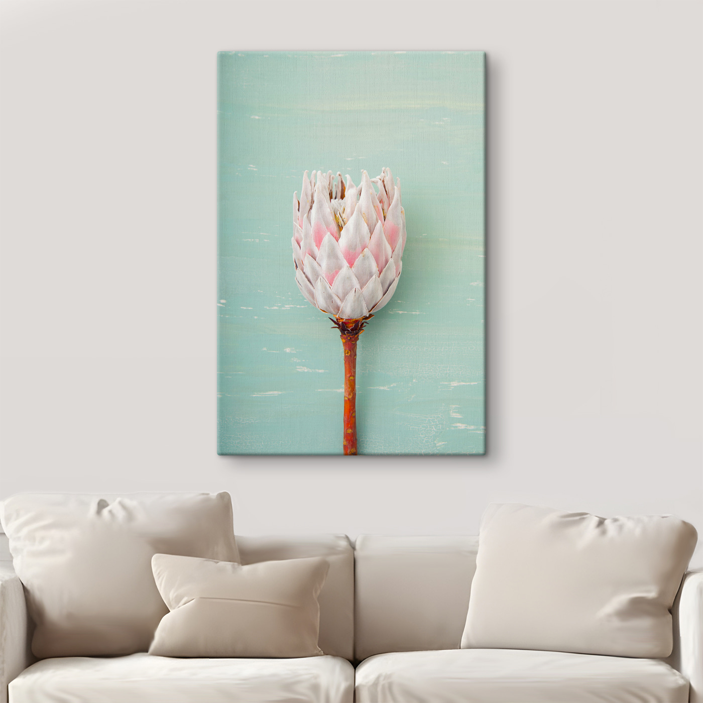Voici votre nouveau produit phare : l’impression sur toile “Fleur de protéa sur fond bleu”. Cette pièce captivante apporte une touche de charme vibrant dans votre salon, votre chambre ou votre coin lecture. Imaginez une élégante fleur de protéa, avec ses douces nuances de rose, sur un fond bleu de rêve. C’est comme si vous capturiez un moment de sérénité dans un jardin botanique lointain, ce qui contribue à rendre votre espace à la fois apaisant et inspirant.