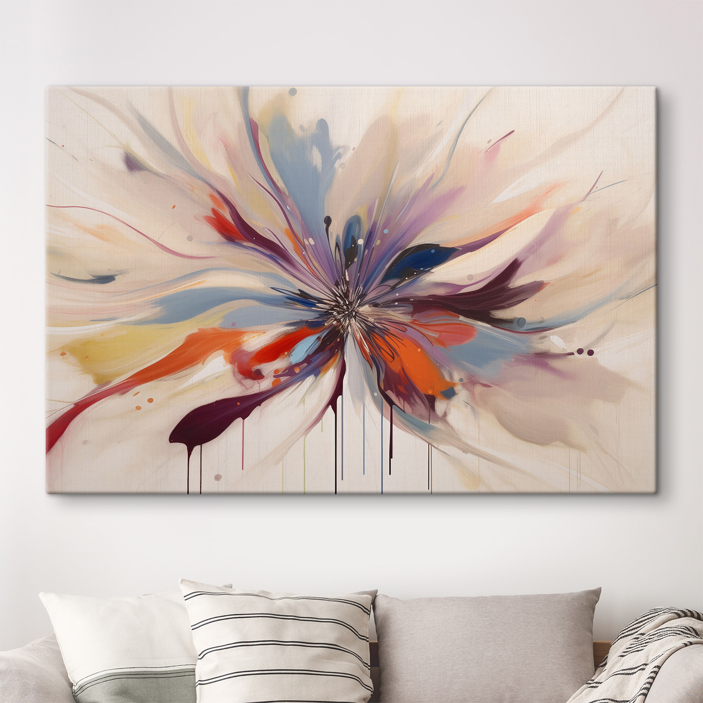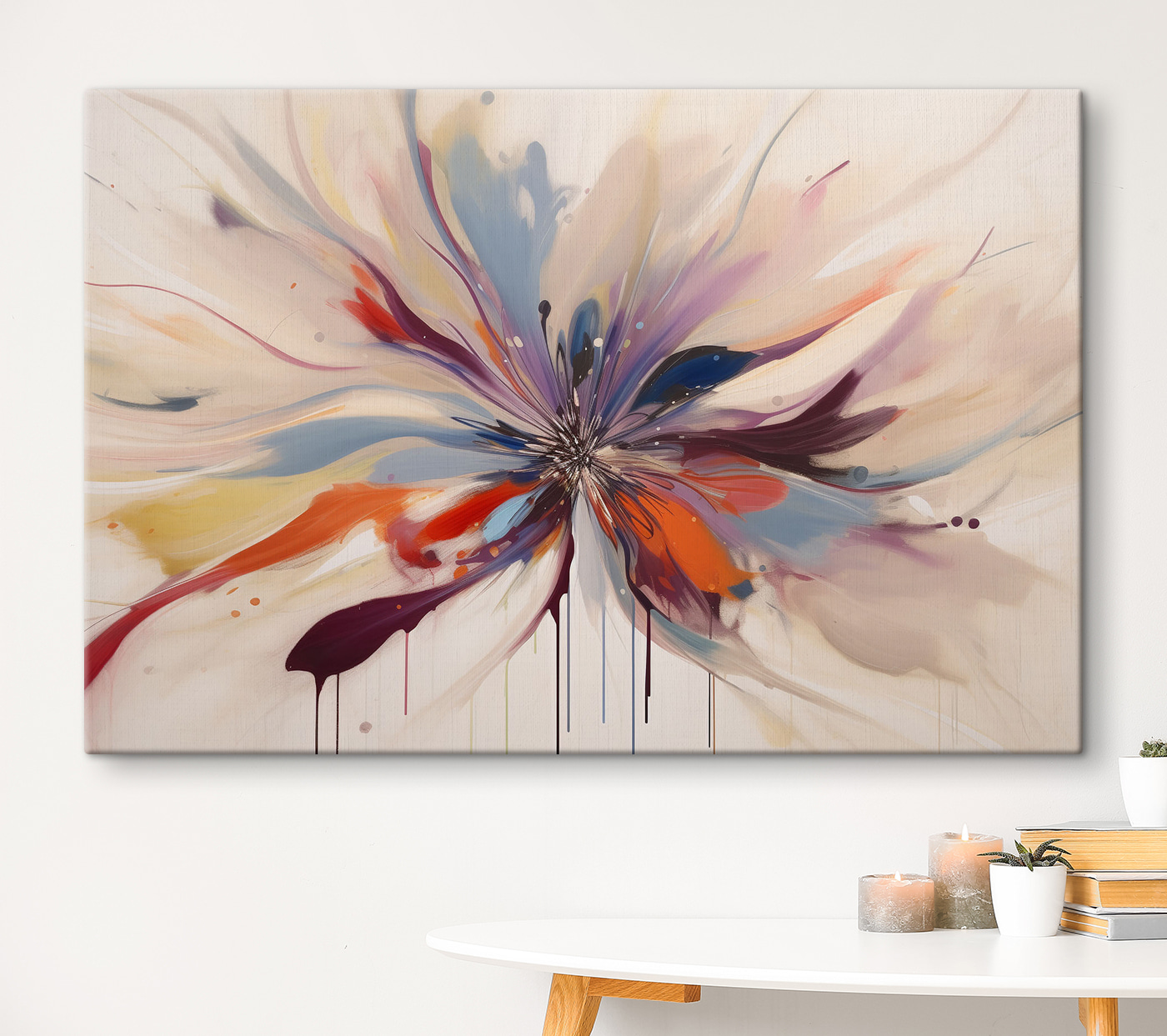 Accrochez-la dans votre salon et regardez les yeux de vos invités s’illuminer. Les couleurs tourbillonnantes – un délicieux mélange de rouges, de bleus et de violets – ont cette étonnante façon d’irradier de l’énergie. C’est comme une étreinte visuelle, qui rend n’importe quelle pièce plus vivante.