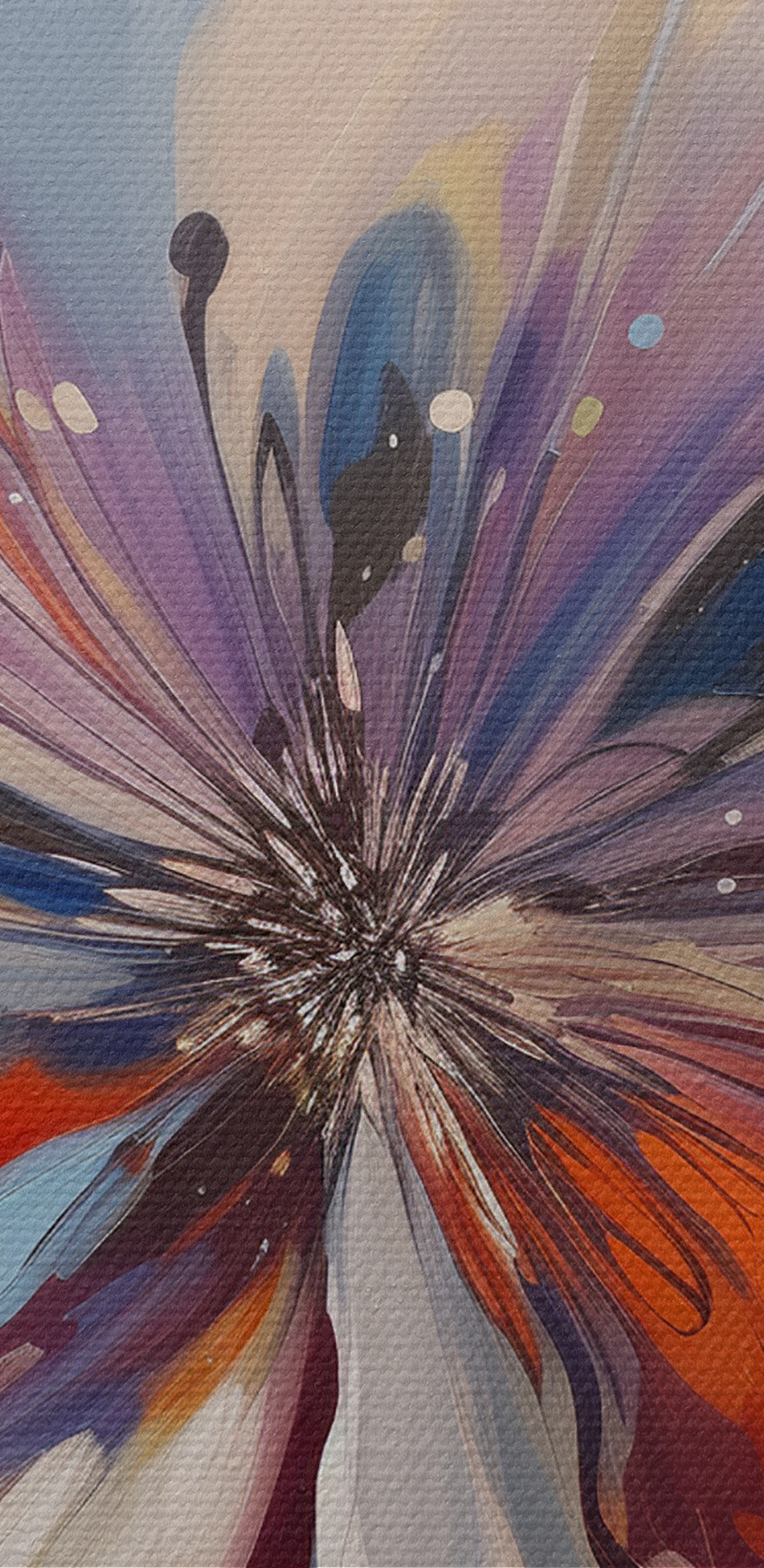 Imaginez-vous un dimanche bien au chaud, votre café préféré à la main, en train de vous prélasser dans le chaos vibrant de cette œuvre d’art. Il y a quelque chose d’apaisant et de revigorant à la fois. Un instant, vous voyez une fleur en pleine éclosion ; l’instant d’après, il s’agit simplement d’une danse artistique de couleurs. C’est le genre d’œuvre qui vous fait réfléchir et sourire.