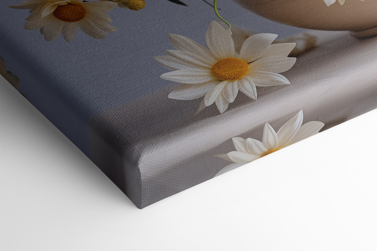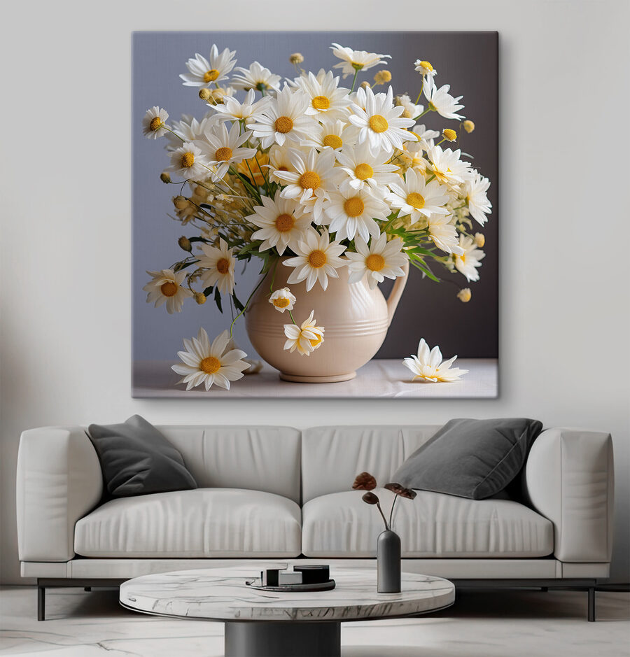 Illuminez votre espace avec cette ravissante impression sur toile représentant des marguerites fleurissant dans un charmant vase en céramique. C’est comme un rayon de soleil sur votre mur ! Imaginez que vous entrez dans une pièce et que vous ressentez instantanément cette ambiance joyeuse, comme si vous veniez de vous promener dans un jardin ensoleillé. La danse ludique des pétales et des couleurs vives invite au sourire et à la chaleur, ce qui en fait un objet parfait pour tout coin qui a besoin d’une touche de vie. Ce n’est pas seulement un décor, c’est aussi un sujet de conversation, un petit morceau de nature qui ne se fane jamais. Qui ne voudrait pas ressentir un peu de cette joie quotidienne ? Transformez vos murs et laissez les marguerites opérer leur magie !