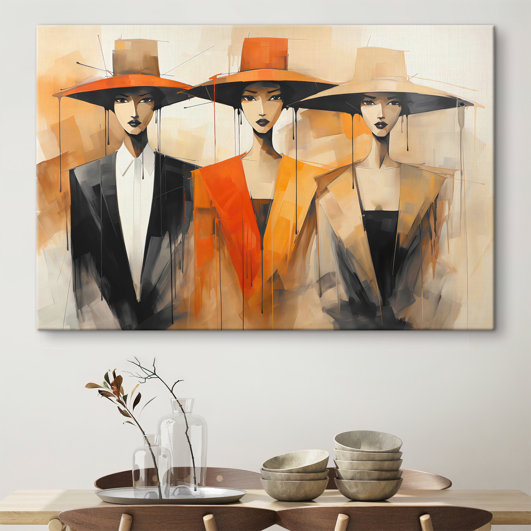 Cette toile n’est pas seulement une œuvre d’art, c’est une déclaration – parfaite pour ajouter une touche de sophistication sans se sentir trop prétentieux. Imaginez la situation : Vous avez eu une longue journée, vous vous détendez avec un verre de vin, et voilà que ces femmes fabuleuses et sereines vous encouragent silencieusement depuis le mur. Cela donne à votre espace une touche de caractère supplémentaire.