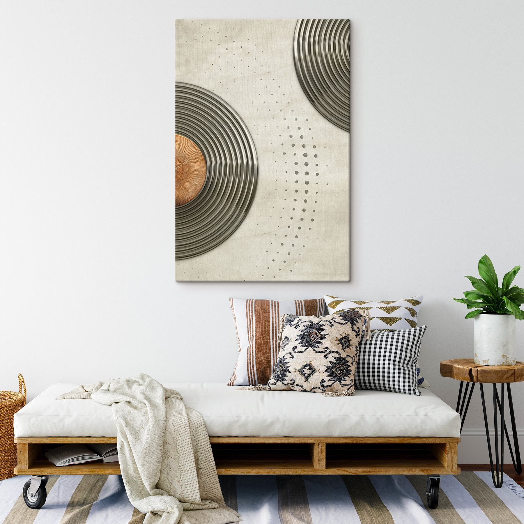 Transformez n’importe quel mur en sujet de conversation avec cette impression sur toile présentant un motif circulaire dynamique. Il s’agit d’une véritable fête de la danse pour votre mur – des tourbillons sans fin et des motifs ludiques qui attirent l’attention ! Imaginez-la dans un loft confortable ou un café branché ; elle ne manquera pas de susciter la joie et l’inspiration. Les tons subtils sont agréables à regarder, ce qui en fait la toile de fond parfaite pour le rituel du café du matin ou une réunion amusante entre amis. Qui n’aimerait pas une œuvre à la fois moderne et accueillante ? C’est de l’art qui murmure “restez un peu”.