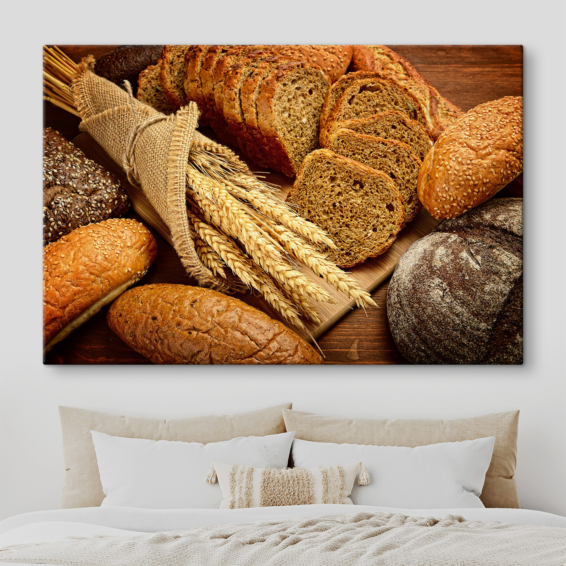 Apportez une ambiance chaleureuse et rustique à votre espace avec cette impression sur toile représentant des pains assortis et de jolies tiges de blé. C’est comme le charme d’une boulangerie confortable qui attend d’égayer un mur vide. Imaginez que vous passez devant et que vous sentez une bouffée de pain frais, même si ce n’est qu’une image. Parfaite pour la cuisine ou la salle à manger, elle suscite des conversations sur les repas partagés et les bons souvenirs. De plus, qui n’aime pas le pain ? C’est un réconfort universel. Ajoutez cette pièce à votre décor et laissez-la devenir le cœur accueillant de votre maison.
