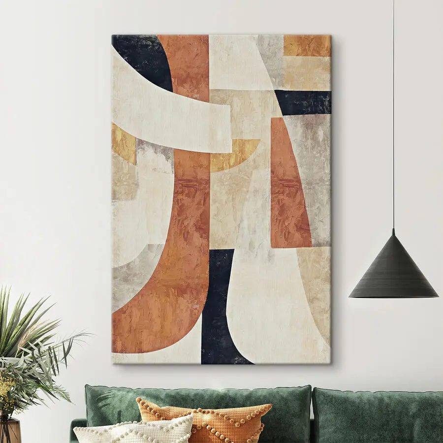 Transformer un mur terne en un point focal étonnant est facile avec cette toile d’art minimaliste. Imaginez-la suspendue au-dessus d’un canapé douillet, rassemblant sans effort l’ensemble de votre espace. La palette apaisante de tons chauds et de formes géométriques invite à la chaleur, rendant n’importe quelle pièce plus accueillante. C’est comme un câlin réconfortant pour vos murs. En le regardant, on peut même trouver l’inspiration en sirotant un café ou en feuilletant un livre. De plus, il est suffisamment polyvalent pour s’adapter à toutes les ambiances, qu’elles soient modernes, bohèmes ou un peu éclectiques. Parfait pour ajouter du caractère sans crier “regardez-moi !”, car parfois, la subtilité a son charme.