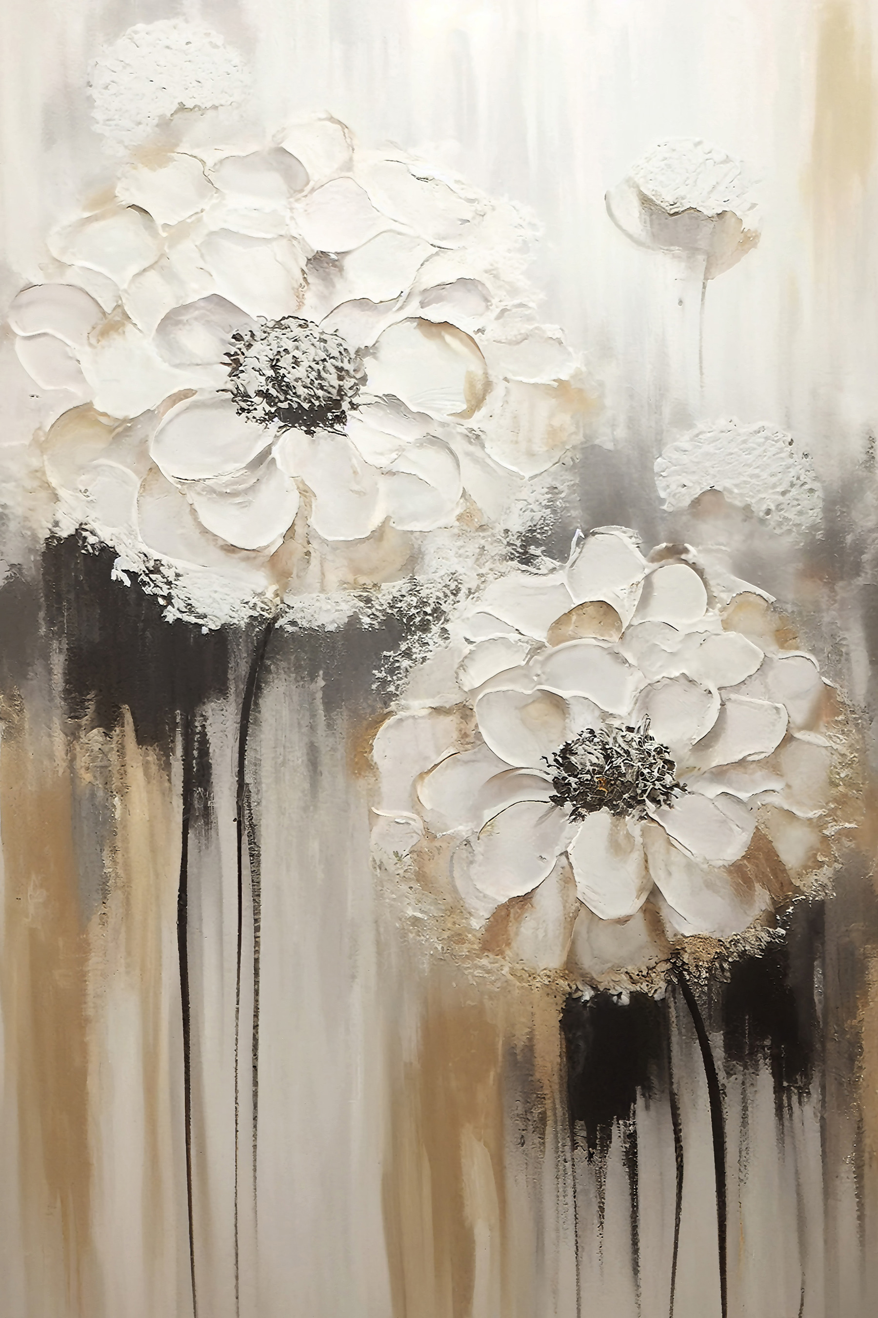 Vous est-il déjà arrivé d’entrer dans une pièce et d’avoir l’impression qu’il y manquait quelque chose ? Il s’agit peut-être de l’œuvre d’art parfaite pour relier le tout. C’est exactement ce que propose le tableau “Fleurs blanches”, simple mais époustouflant. De grandes fleurs blanches s’épanouissent sur un arrière-plan composé d’un mélange de teintes douces. Ces pétales semblent presque danser. Imaginez cette beauté suspendue dans votre salon, le rendant serein et accueillant. C’est comme si vous aviez un petit bout de jardin paisible à l’intérieur. À la fois artistique et apaisante, elle ne manquera pas d’attirer l’attention de tout le monde et de murmurer : “Hé, restez un peu !”.