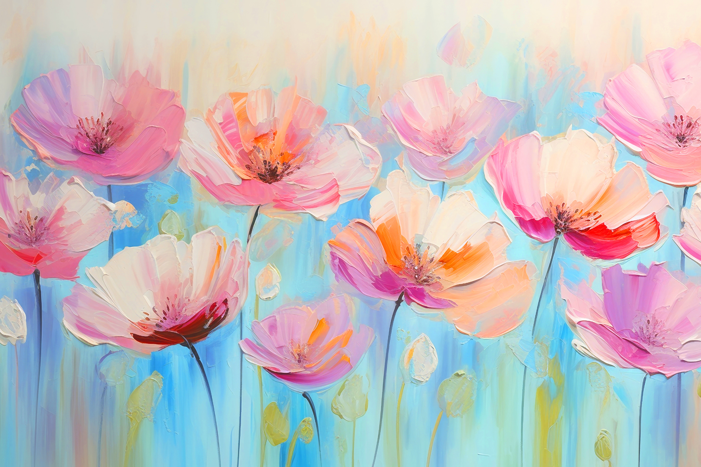 Imaginez une touche de printemps sur votre mur avec cette impression sur toile intitulée “Vibrant Blooms Against a Blue Sky” (Fleurs vibrantes sur fond de ciel bleu). C’est comme si vous marchiez dans un champ de fleurs en aquarelle, où chaque pétale semble danser avec la brise. Les couleurs sont si vives qu’elles chantent presque. Parfait pour les amoureux des fleurs ou pour tous ceux qui veulent un peu de nature à l’intérieur !