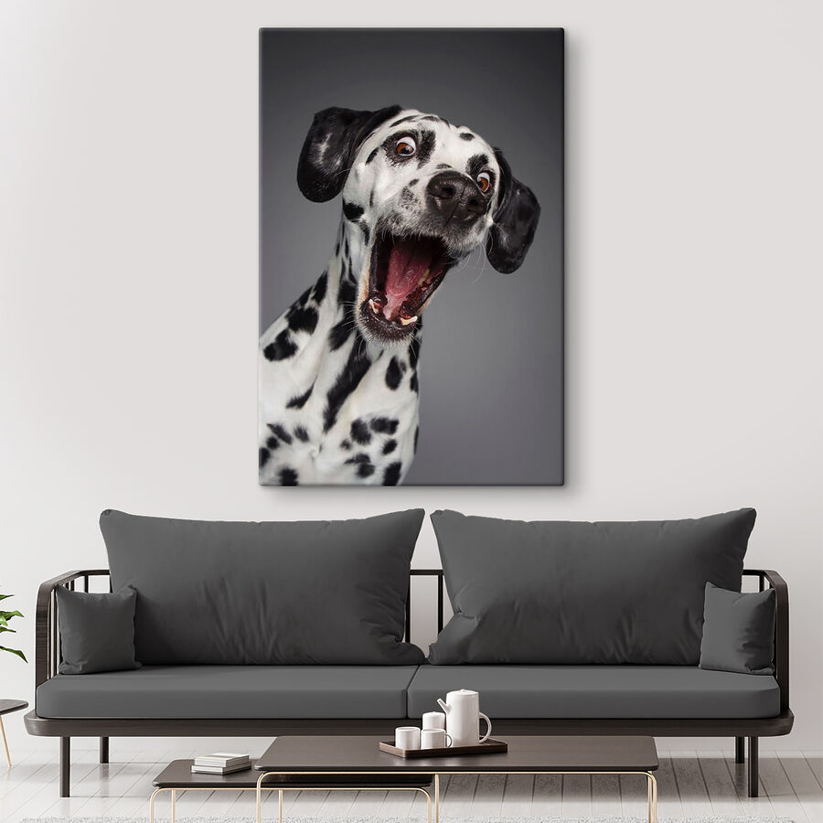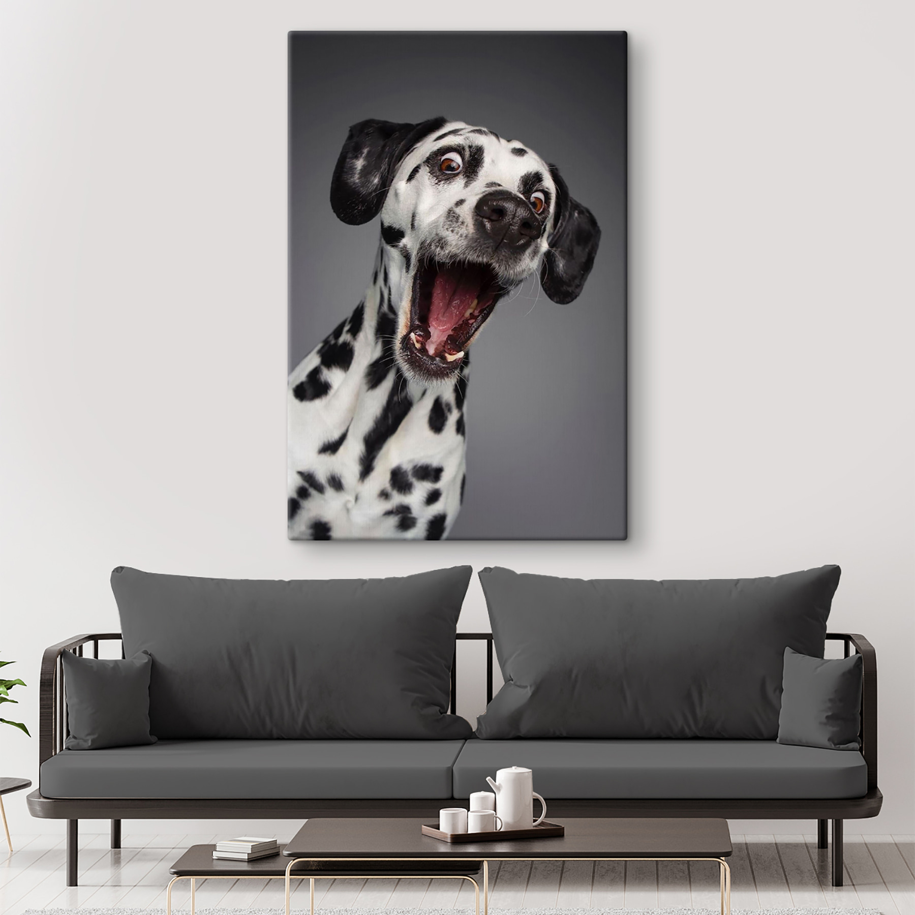 Imaginez que vous entriez dans votre chambre et que vous soyez accueilli par ce charmant dalmatien aux yeux écarquillés et à l’expression hilarante et surprise sur une impression sur toile. C’est comme si vous capturiez un moment de pur drame canin qui fera sourire tout le monde. Parfait pour ceux qui aiment un peu de fantaisie dans leur décor. Cette pièce apporte une ambiance joyeuse et enjouée à n’importe quel espace – un peu comme si votre chien venait d’entendre le mot “promenade” ou de repérer une friandise inattendue !