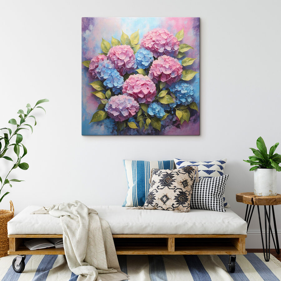 Illuminez n’importe quel espace avec cette superbe impression sur toile de fleurs d’hortensia roses et bleues, où le charme de la nature saute directement sur le mur. Imaginez que vous entrez dans votre salon et que vous sentez instantanément une vague de calme vous envahir – c’est exactement ce que ces fleurs ont l’habitude de faire. Les couleurs douces dansent ensemble, comme si elles avaient une conversation amicale.