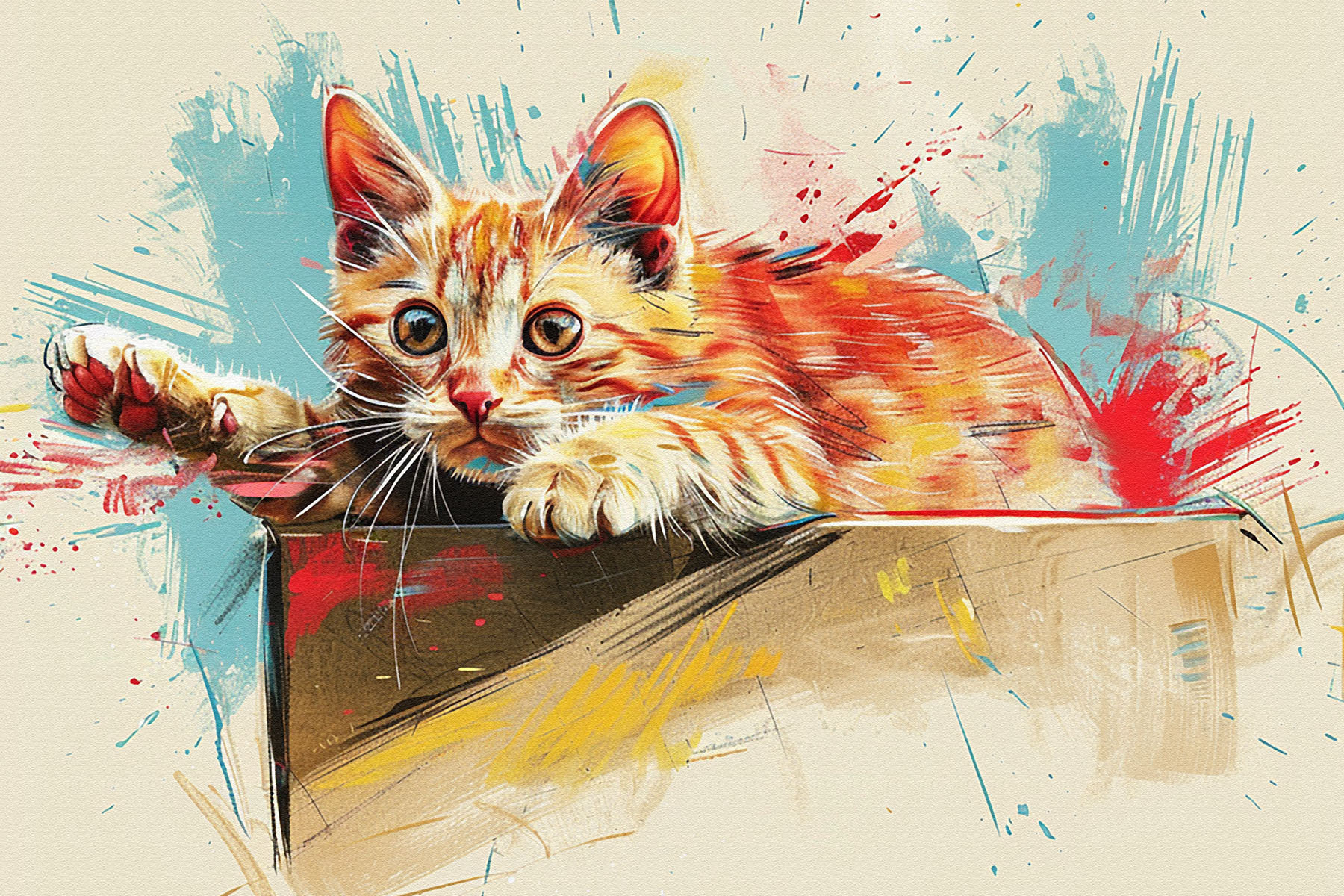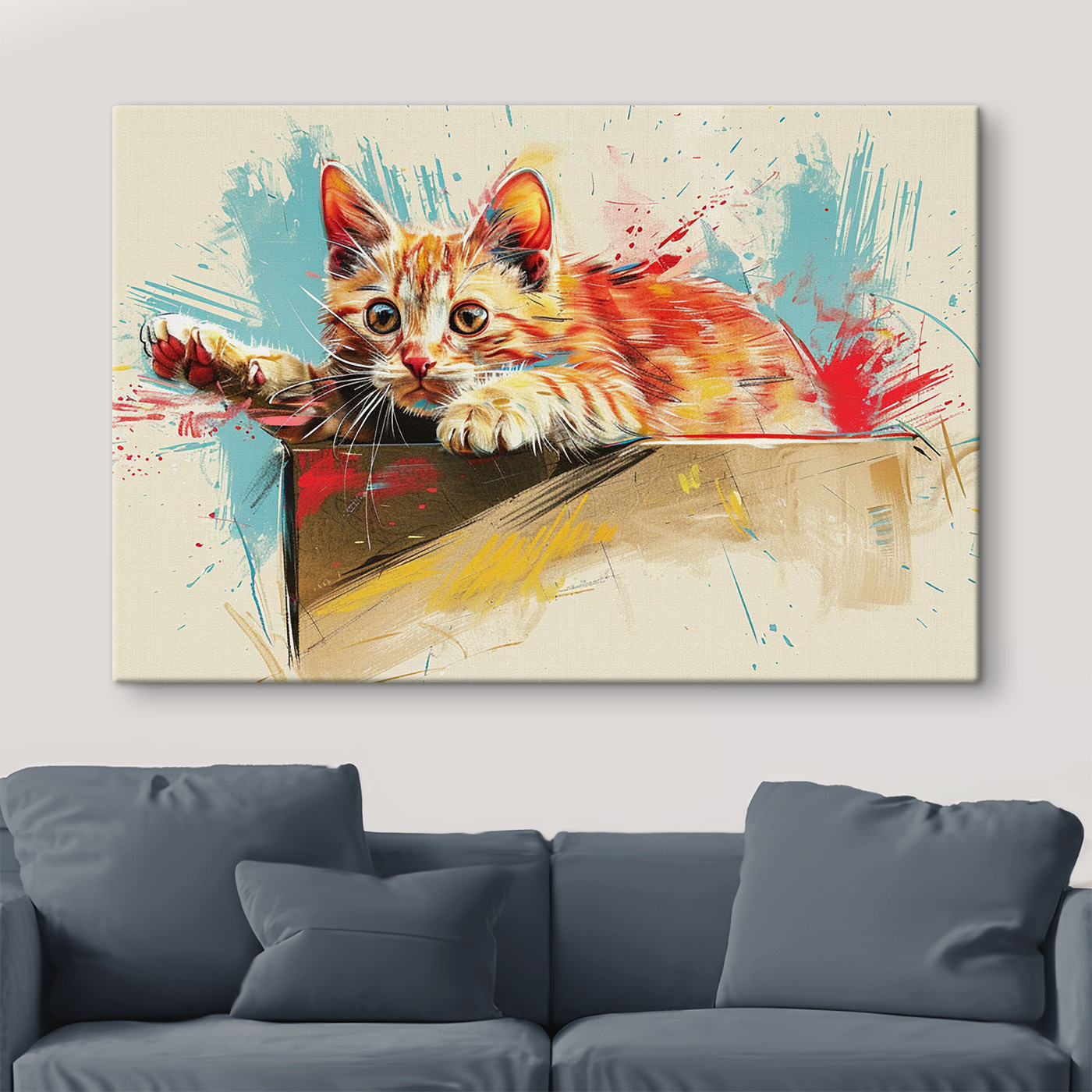 Imaginez sur votre mur : un petit chaton curieux qui sort d’une boîte. C’est comme si le chaton était sur le point de sauter dans votre salon ! Cette impression sur toile, intitulée “Un chaton s’amuse à sortir d’une boîte”, allie le charme adorable des félins à une touche artistique. Parfaite pour la maison d’un amoureux des animaux – sérieusement, qui pourrait résister à ces grands yeux et à ces pattes enjouées ? Les éclats de couleurs vibrantes apportent une énergie qui peut égayer n’importe quel espace ennuyeux.