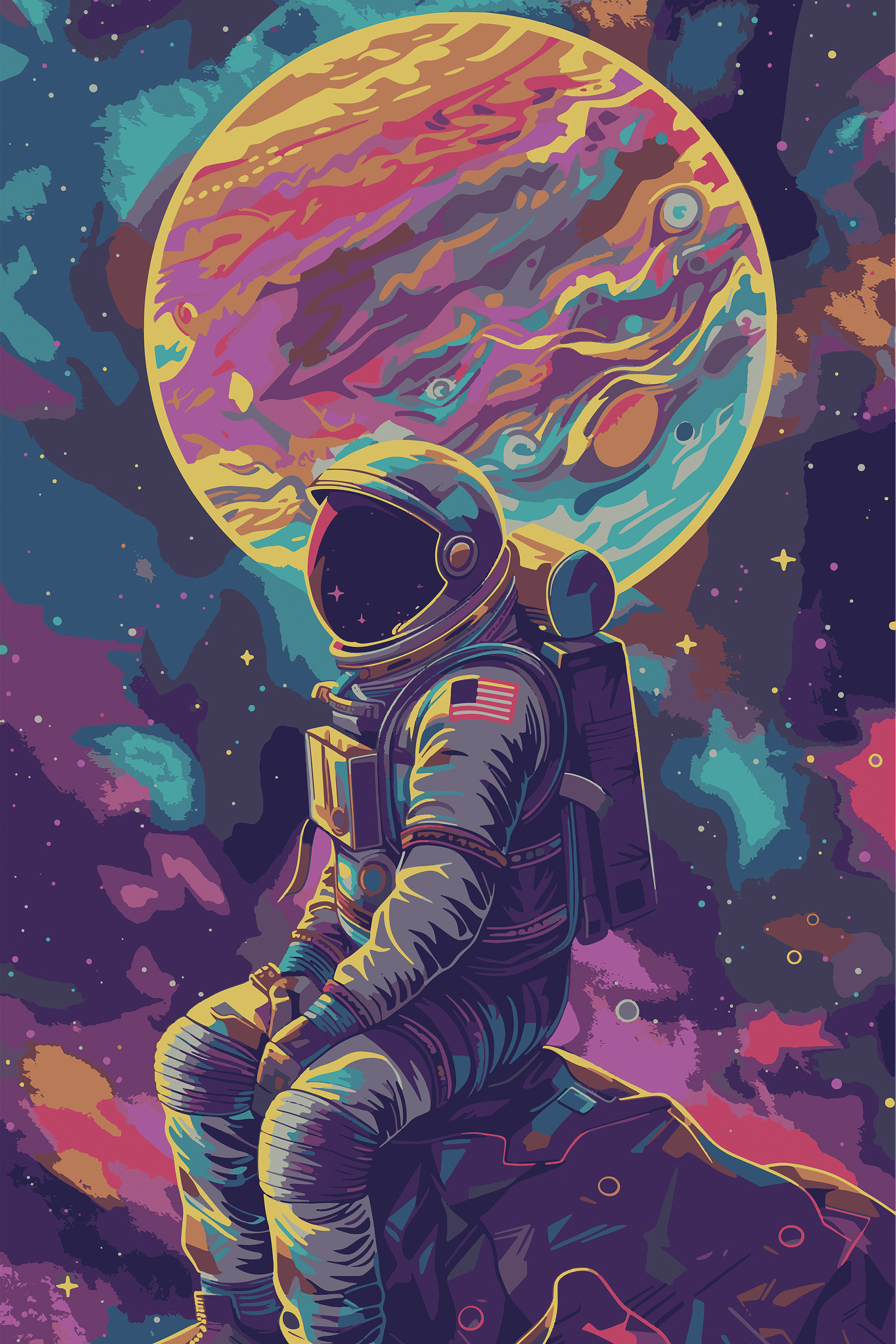 Transformez n’importe quelle pièce en une aventure cosmique grâce à cette vibrante impression sur toile d’un astronaute dans l’espace. Imaginez : vous êtes assis dans votre salon et vos yeux s’égarent sur une silhouette qui contemple paisiblement des galaxies tourbillonnantes et une planète géante et colorée. C’est comme une petite escapade dans l’univers sans quitter votre canapé. Les bleus, les roses et les violets se mélangent d’une manière presque magique. Ce tableau est parfait pour tous ceux qui rêvent d’étoiles ou qui ont besoin d’une touche d’émerveillement interstellaire dans leur vie. Vos amis vous demanderont certainement d’où vient cette œuvre d’art. Qui sait, ce copain cosmique pourrait bien inspirer le prochain grand rêve !