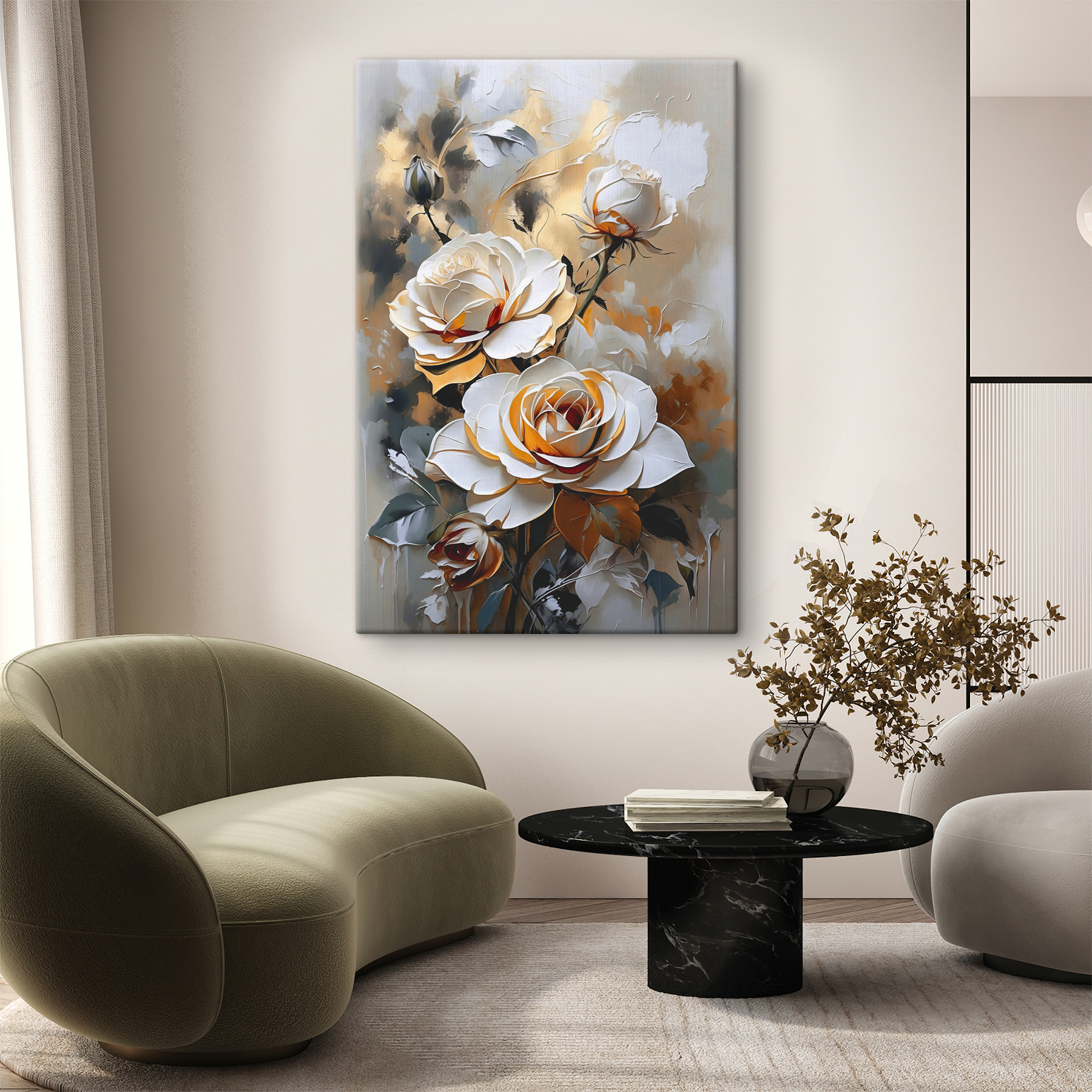 Transformez n’importe quelle pièce en un petit coin de paradis grâce à cette impression sur toile vivante représentant d’élégantes roses dans des teintes vibrantes. Imaginez que vous vous réveillez chaque jour avec cette explosion de couleurs qui illumine votre espace – c’est comme si vous aviez un jardin qui ne se fane jamais. Les gracieuses fleurs se détachent sur un fond doux, invitant à des rêveries d’après-midi ensoleillées. Parfait pour ce mur vierge qui ne demande qu’à être agrémenté d’une touche de personnalité. Qu’il s’agisse d’un coin lecture confortable ou de la pièce maîtresse de votre salon, cette œuvre d’art ne se contente pas d’égayer les choses, elle apporte aussi une ambiance chaleureuse et accueillante. C’est un rappel quotidien que la beauté est partout, et qui n’aimerait pas avoir une touche de joie à portée de main ? Préparez-vous à sourire à chaque fois que vous passez devant !