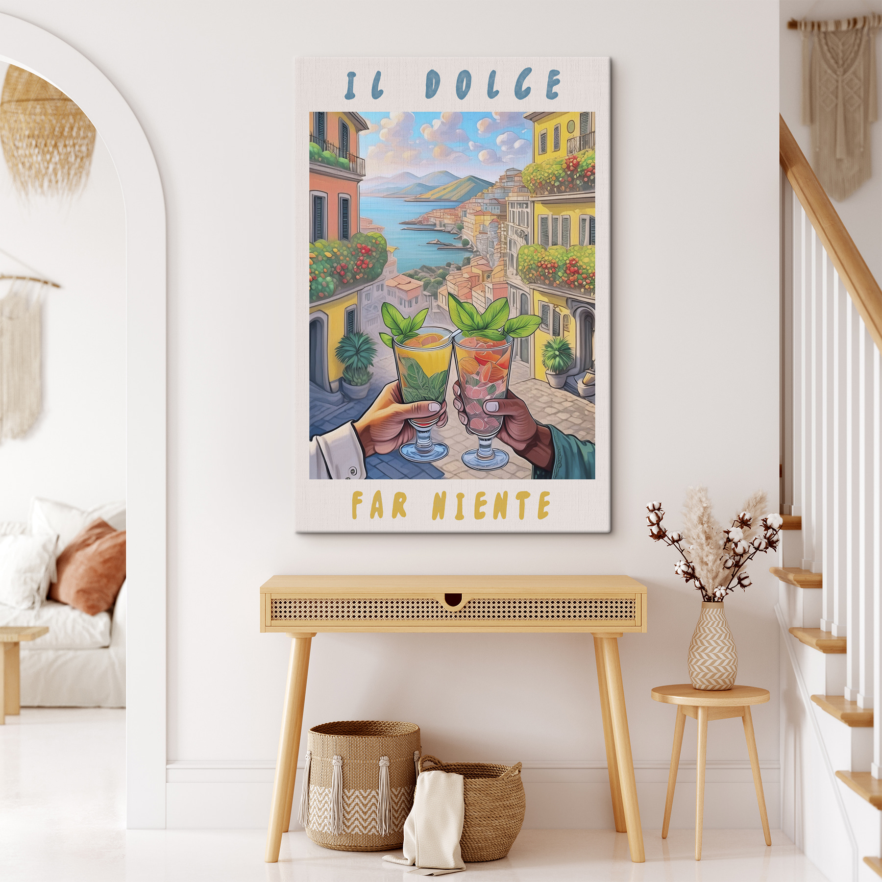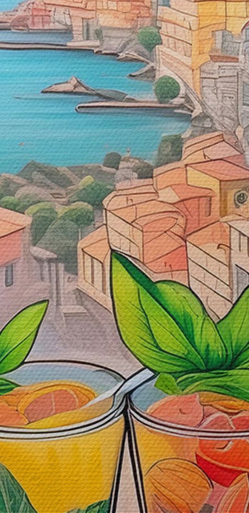 Imaginez : vous vous prélassez, votre boisson préférée à la main, surplombant un village méditerranéen coloré. C’est ce que cette impression sur toile, “Main tenant un verre”, fait apparaître sur votre mur. C’est comme des mini-vacances que vous n’avez pas besoin de préparer ! Avec un paysage urbain vibrant et ces boissons rafraîchissantes au premier plan, vous avez l’impression d’être sur place, en train d’absorber un peu de “dolce far niente” – la douceur de ne rien faire. Parfait pour ajouter une touche de couleur et un soupçon d’exotisme à n’importe quelle pièce, des cuisines douillettes aux salons animés. C’est comme une escapade ensoleillée, sans quitter la maison ! 🍹🌞