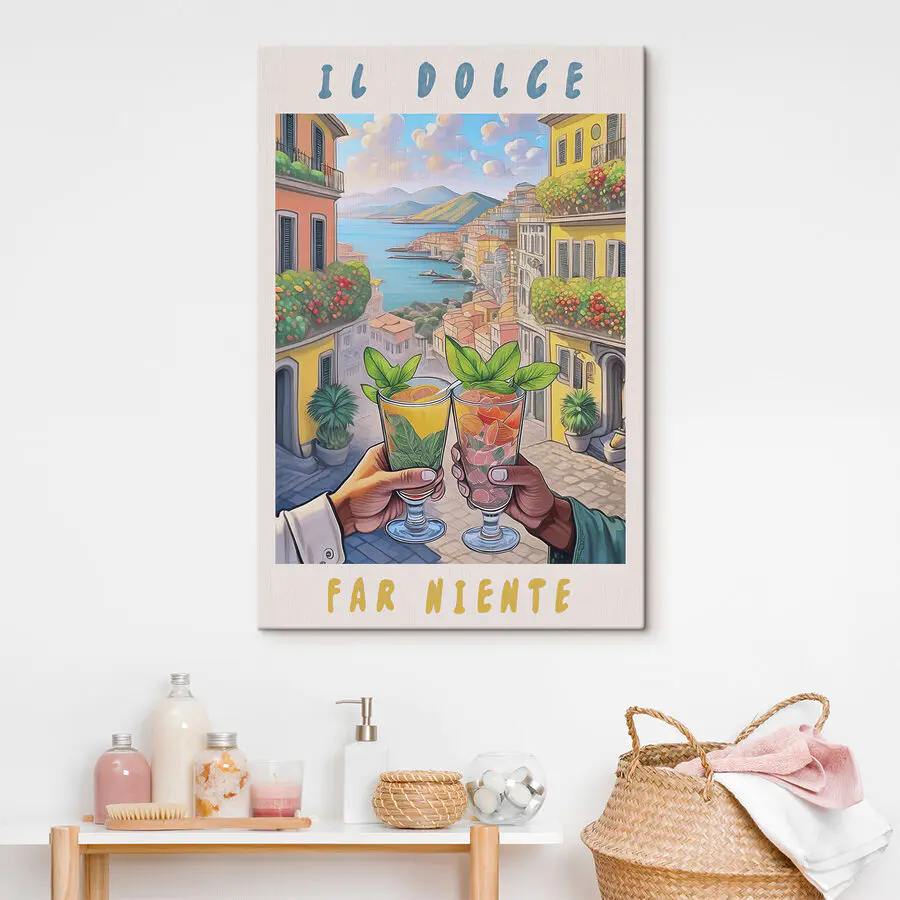 Imaginez : vous vous prélassez, votre boisson préférée à la main, surplombant un village méditerranéen coloré. C’est ce que cette impression sur toile, “Main tenant un verre”, fait apparaître sur votre mur. C’est comme des mini-vacances que vous n’avez pas besoin de préparer ! Avec un paysage urbain vibrant et ces boissons rafraîchissantes au premier plan, vous avez l’impression d’être sur place, en train d’absorber un peu de “dolce far niente” – la douceur de ne rien faire. Parfait pour ajouter une touche de couleur et un soupçon d’exotisme à n’importe quelle pièce, des cuisines douillettes aux salons animés. C’est comme une escapade ensoleillée, sans quitter la maison ! 🍹🌞