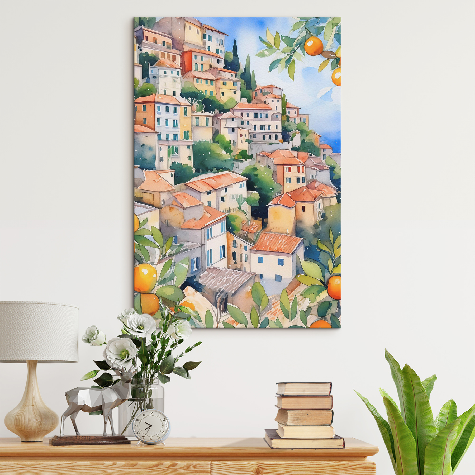 Jetez un coup d’œil à cette charmante impression sur toile intitulée “Village coloré à flanc de colline et verdure”. C’est comme un petit coin de paradis sur votre mur. Il suffit de regarder ces toits colorés nichés au milieu d’arbres verdoyants pour sentir le soleil méditerranéen vous réchauffer le visage. Parfaite pour votre salon ou votre bureau, cette pièce apporte une touche de couleur et une touche d’exotisme à laquelle il est difficile de résister. Imaginez votre stress quotidien s’évanouir en contemplant cette scène de village sereine, rêvant d’après-midi paresseux et d’oranges fraîches. Vous avez un endroit qui a besoin d’un peu de réconfort ? Cette impression est faite pour vous !