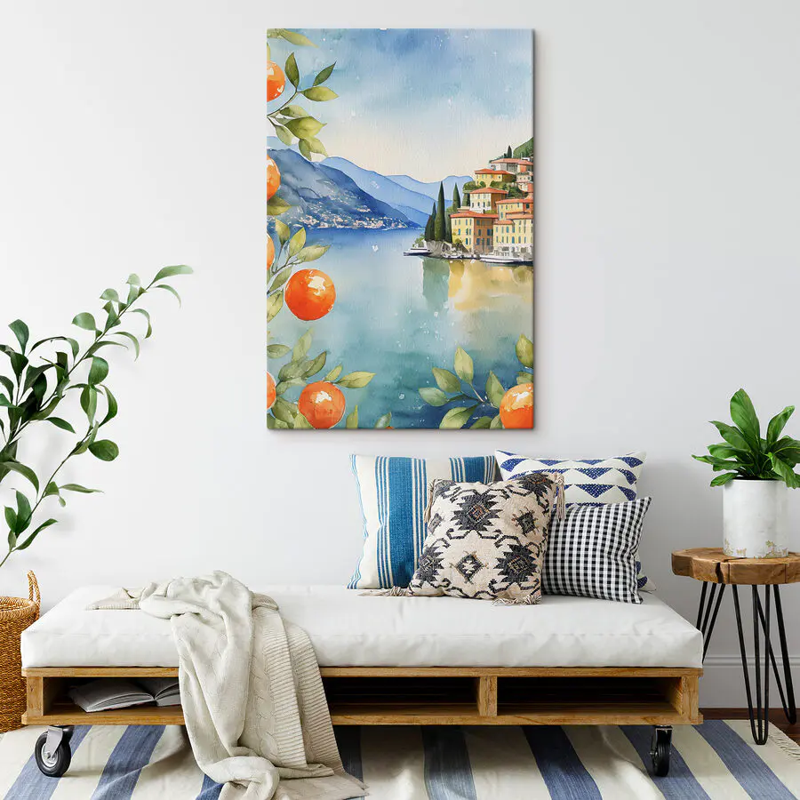 Cette vibrante impression sur toile, “Village lacustre avec orangers”, vous transporte instantanément dans un endroit calme et rafraîchissant. Imaginez : c’est comme si vous regardiez une aquarelle de rêve où des oranges vibrantes et juteuses se détachent sur des eaux sereines et bleues. Imaginez que vous vous réveillez et que vous voyez cette beauté tous les matins – c’est un véritable stimulant pour l’humeur ! Les doux coups de pinceau et les bâtiments pittoresques et colorés qui longent le rivage semblent presque universellement apaisants. C’est l’idéal pour ajouter un peu de fantaisie et de charme inspiré des voyages à n’importe quelle pièce. Pensez à ces matins où le monde semble chaotique – un coup d’œil à cette pièce et vous vous sentirez comme dans une retraite calme au bord d’un lac. De plus, le détail des oranges donne l’impression qu’il est presque bon à manger, ce qui ajoute une touche ludique et inattendue. Une décoration murale idéale pour les amateurs de voyages, les rêvasseurs ou tous ceux qui souhaitent insuffler à leur espace une touche de fraîcheur et de tranquillité colorée.