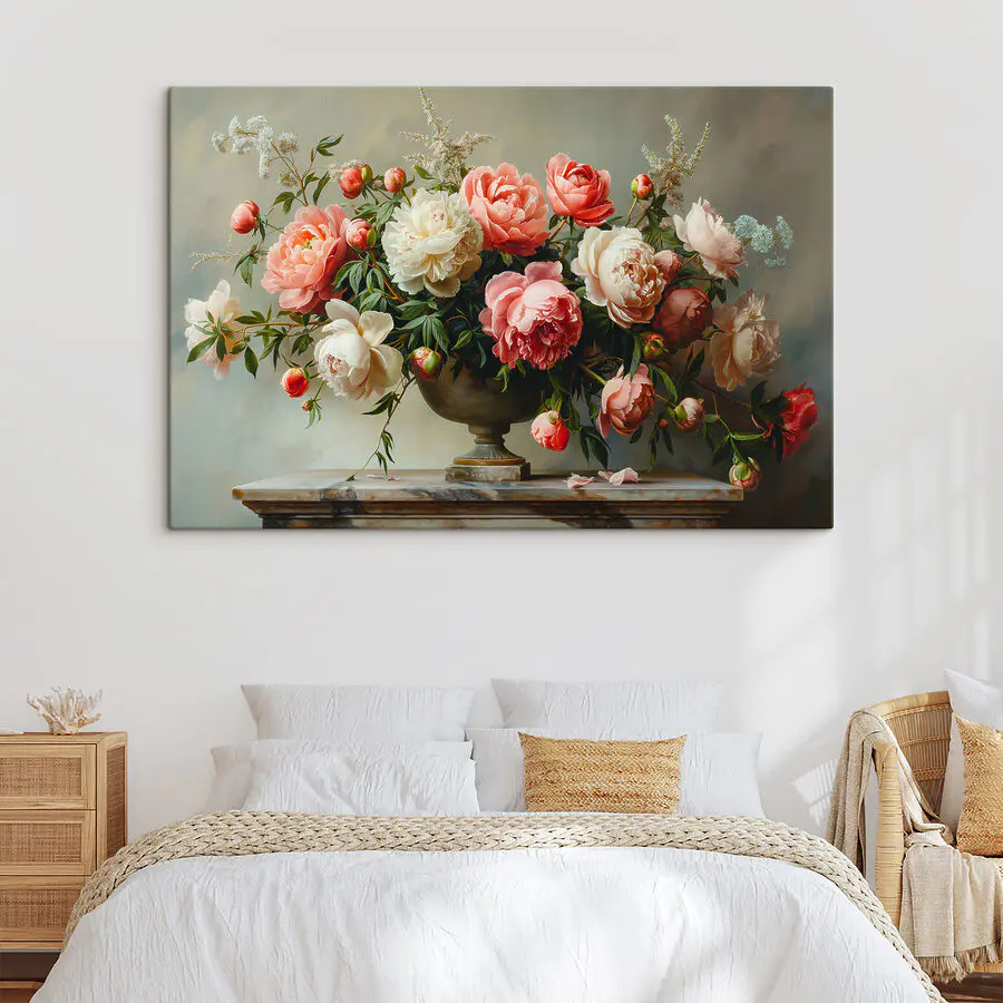 Les vibrations riches et classiques du vase et les fleurs délicates dans des tons roses et blancs doux s’accordent à merveille. Il possède un charme intemporel qui s’adapte à tous les styles de décoration. Qu’il soit chic ou confortable, il s’y intègre parfaitement. De plus, il se trouve dans les catégories Beaux-arts, Fleurs et Art sur toile populaire. Ce qui est logique, n’est-ce pas ? Parce qu’il plaît vraiment à tout le monde.