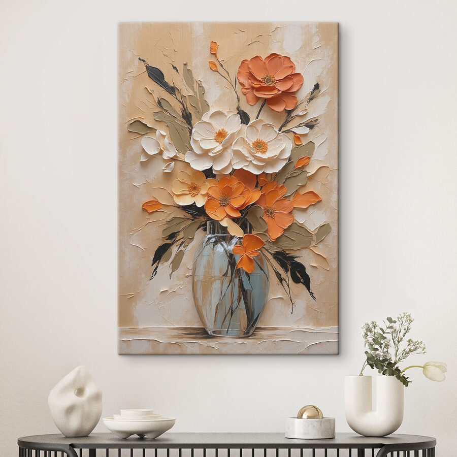 Imaginez que vous entrez dans votre salon et que vous êtes accueilli par une explosion de couleurs aussi rafraîchissante qu’un matin de printemps. Cette “peinture de fleurs dans un vase” n’est pas seulement une œuvre d’art, c’est aussi une personnalité qui attend d’égayer votre espace. Les oranges audacieux et les blancs doux se mêlent comme de vieux amis, offrant à la fois chaleur et élégance. Imaginez : un lundi maussade, vous sirotez votre café, jetez un coup d’œil à ce chef-d’œuvre et voilà, votre humeur s’en trouve immédiatement rehaussée. C’est comme un bouquet qui ne se fane jamais et qui ne cesse d’encourager vos bonnes vibrations. Parfait pour un mur qui a besoin d’un peu plus de joie.