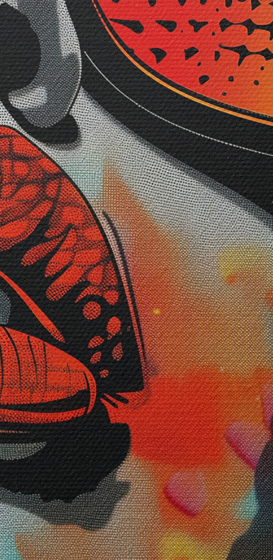 C’est comme si l’art lui-même avait une conversation silencieuse avec vous… vous invitant à plonger dans son monde et à vous perdre dans ses détails. Le mélange de coups de pinceau et d’éclaboussures de couleur rend l’ensemble de l’œuvre vivante et énergique. Parfait pour ajouter un peu d’éclat à un mur autrement ordinaire !