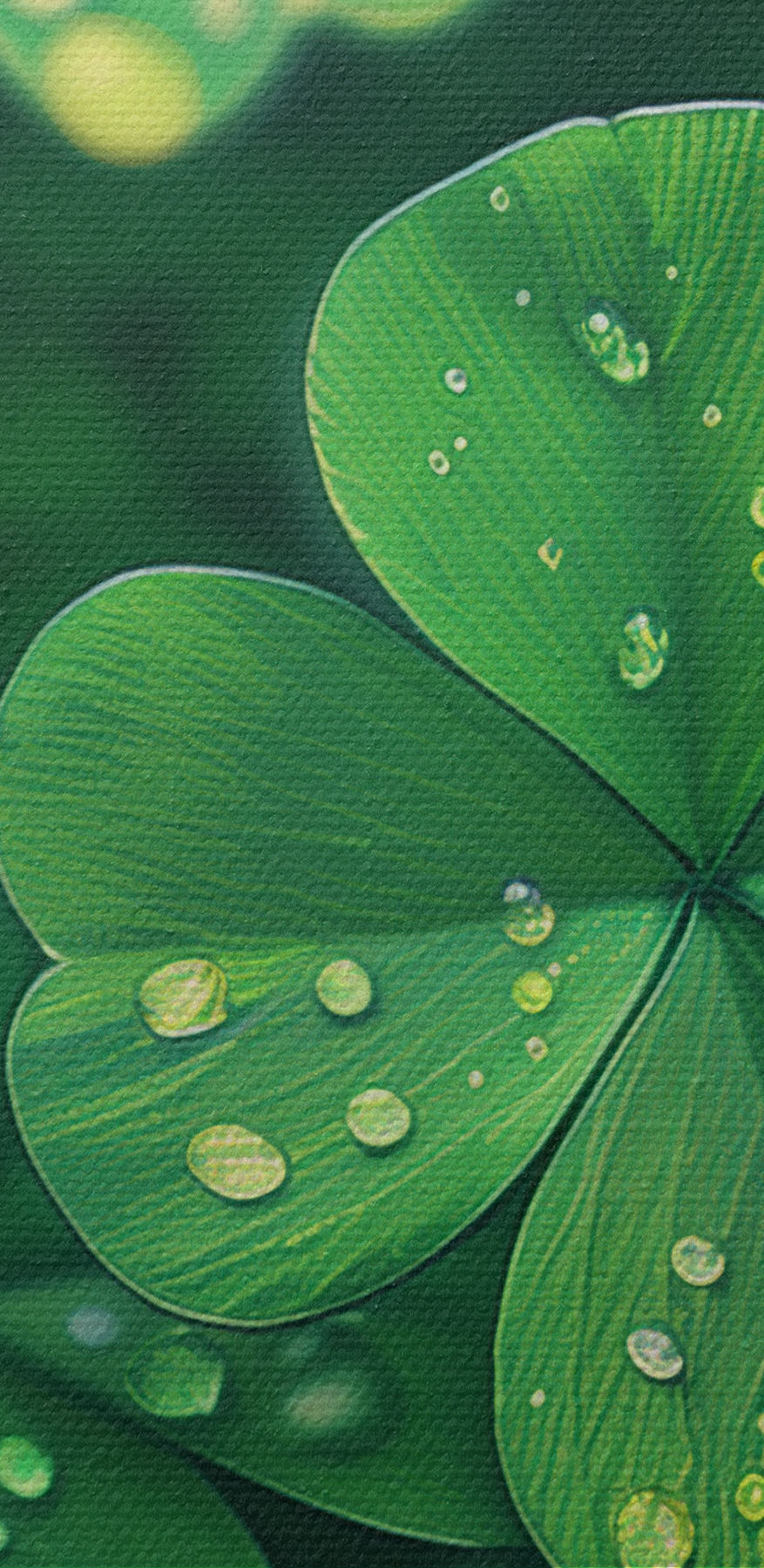 Transformez n’importe quel mur en un lieu d’évasion sereine grâce à cette impression sur toile enchanteresse représentant un bouquet de trèfles animé, chacun orné de minuscules gouttelettes qui capturent l’essence de la nature. Imaginez-la accrochée dans un coin confortable, comme si vous apportiez un peu de l’extérieur à l’intérieur. Les verts riches et les gouttelettes scintillantes invitent à la fraîcheur, vous donnant l’impression de vous promener dans une prairie humide par un matin de printemps. Parfaite pour ceux qui aiment une touche de charme naturel, cette œuvre d’art murmure simplicité et rajeunissement, invitant de doux sourires et des moments paisibles dans la vie de tous les jours. Qui ne voudrait pas d’une touche de nature tous les jours ?