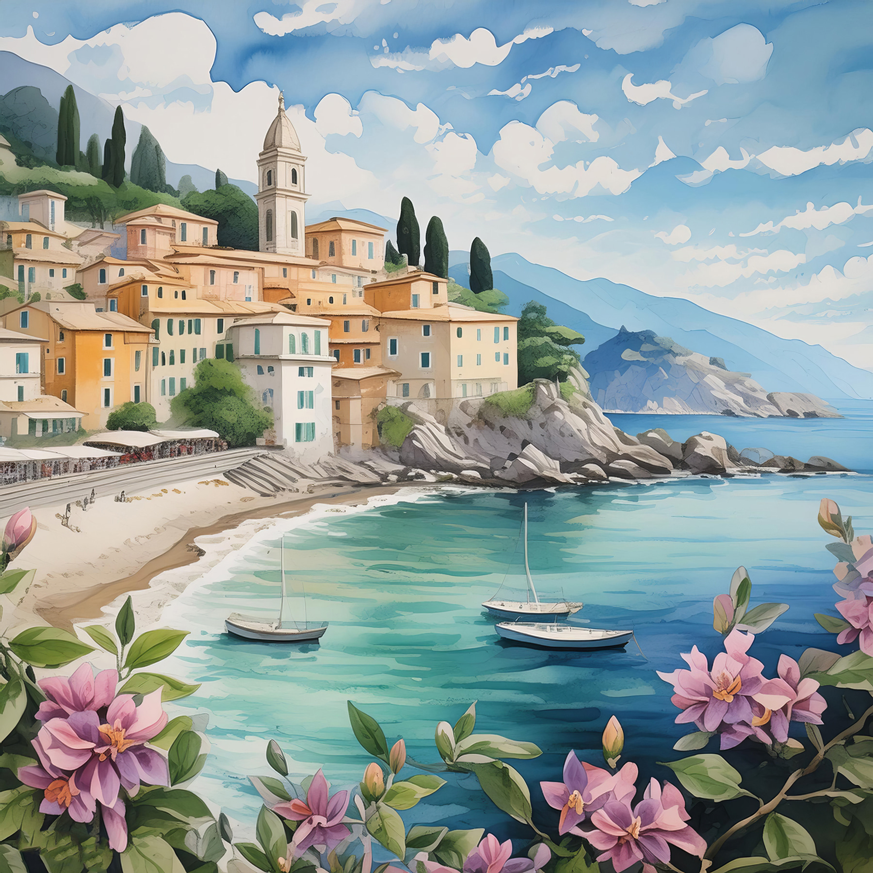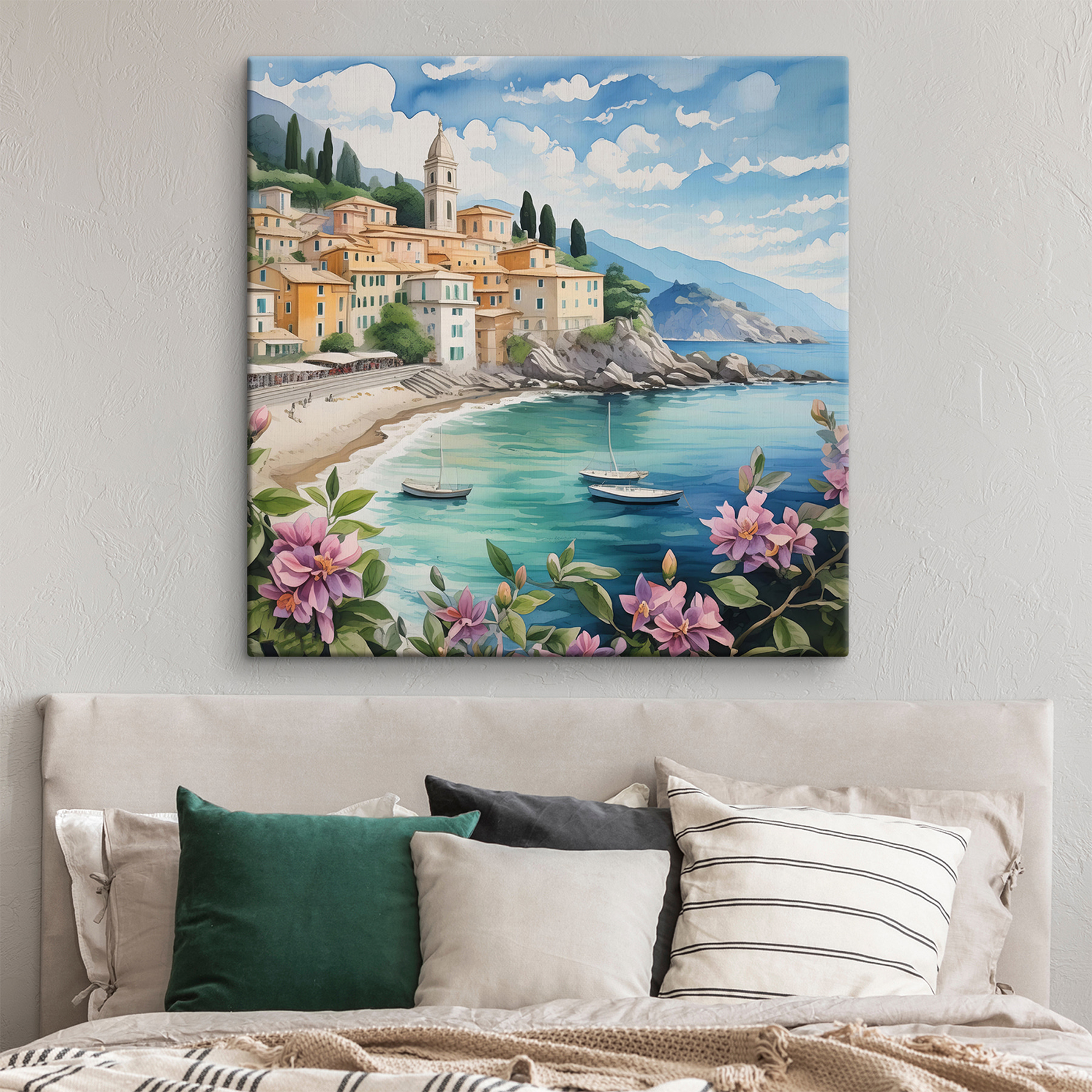 Vous souhaitez donner un peu de vie à vos murs ? Jetez un coup d’œil à ce qui suit : les impressions sur toile s39299. Imaginez que vous entriez dans votre salon et que vous soyez accueilli chaque jour par cette vue époustouflante. Il y a un peu de tout : une architecture charmante, des fleurs colorées, une nature sereine et une scène de rêve au bord de la mer qui appelle à la détente.