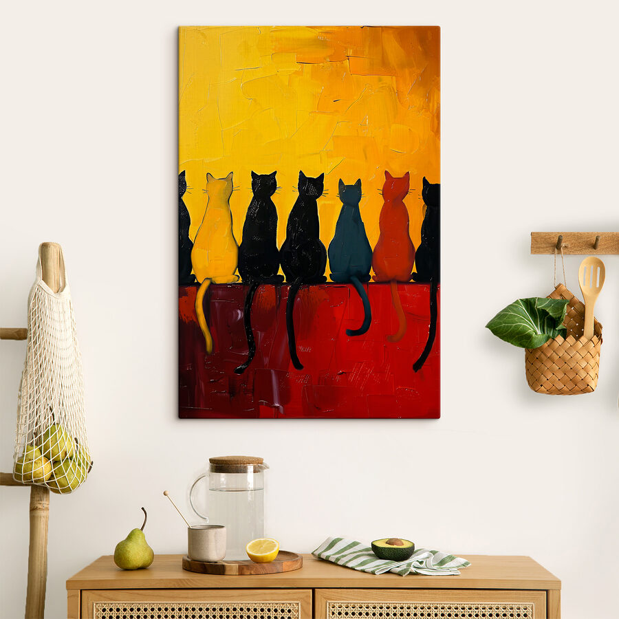 Jetez un coup d’œil à cette impression sur toile originale intitulée “Impressions sur toile s39309” – on dirait un défilé de chats en train de se détendre par un après-midi de farniente ! Les jaunes vifs et les rouges riches se mélangent, donnant une ambiance audacieuse et ludique. Chaque chat semble avoir sa propre personnalité, n’est-ce pas ? Cette pièce serait parfaite pour n’importe quel endroit qui aurait besoin d’une touche de fantaisie et d’une touche de couleur. Imaginez-la dans un coin lecture confortable ou peut-être au-dessus de votre canapé – elle ne manquera pas de susciter des conversations et des sourires. Qui aurait cru que les chats pouvaient être à la fois si sophistiqués et si amusants ? Allez-y et donnez à vos murs un caractère vivant avec cette charmante ligne de chat !
