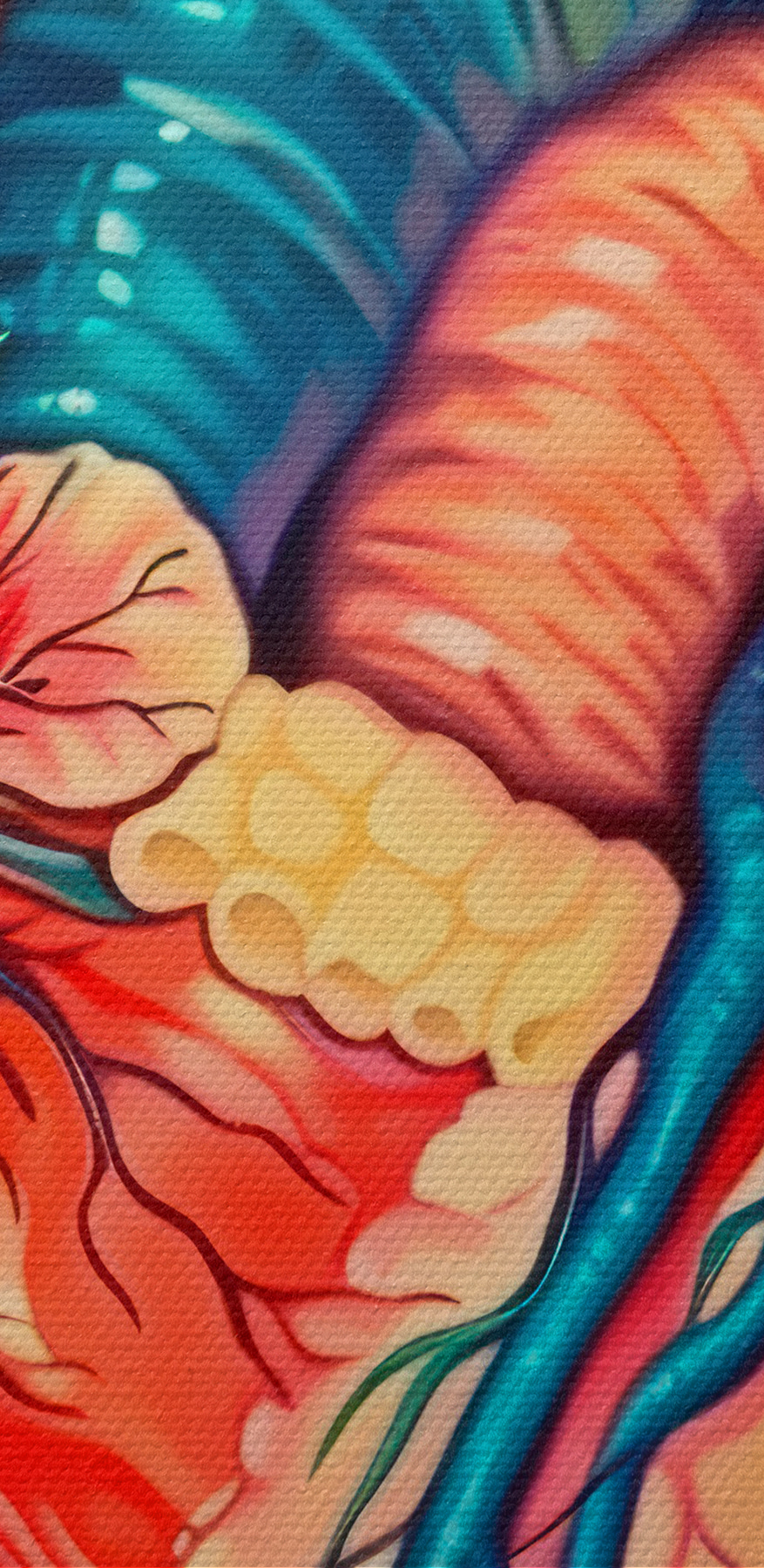Imaginez-la accrochée dans votre salon ou votre studio. Les réactions des invités ? “Wow !” Tout d’abord, ils remarqueraient l’explosion de couleurs – des rouges profonds, des bleus apaisants et des jaunes éclatants. C’est un peu comme si le cœur pompait la vie dans les fleurs. Il y a quelque chose de poétique là-dedans, vous ne trouvez pas ?