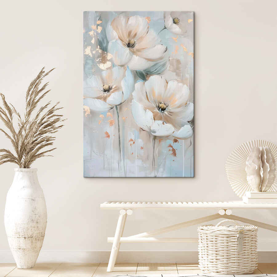 Cette superbe impression sur toile, “Tableaux s39352”, est comme une bouffée d’air frais pour vos murs ! Imaginez que vous rentriez chez vous après une longue journée, que vous vous installiez sur le canapé et que vous soyez accueilli par ces fleurs de rêve, comme un doux murmure de la nature à l’intérieur. Le doux mélange de couleurs et ces fleurs délicates donnent presque l’impression d’être balancées par la brise… si seulement les fenêtres étaient ouvertes.