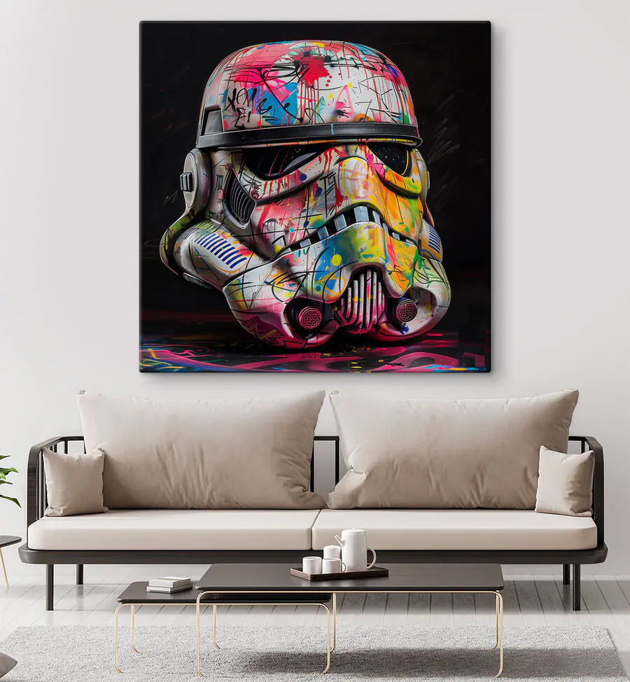 Plongez dans un monde où la culture pop rencontre l’art ludique avec le casque coloré de Storm Trooper de Tableaux. Cette pièce saisissante n’est pas seulement une œuvre d’art murale, c’est aussi un sujet de conversation. Imaginez que vous entrez dans une pièce et que vous êtes accueilli par ce casque vibrant, éclaboussé de couleurs sauvages et d’un flair incomparable. Il apporte une ambiance fraîche et funky qui peut faire oublier le sérieux de la vie d’adulte. Imaginez une soirée de jeu confortable ou une réunion décontractée – cette toile ajoute la touche ludique parfaite. C’est comme si vous aviez un morceau de la galaxie qui raconte une histoire et qui n’attend que vous pour la découvrir.