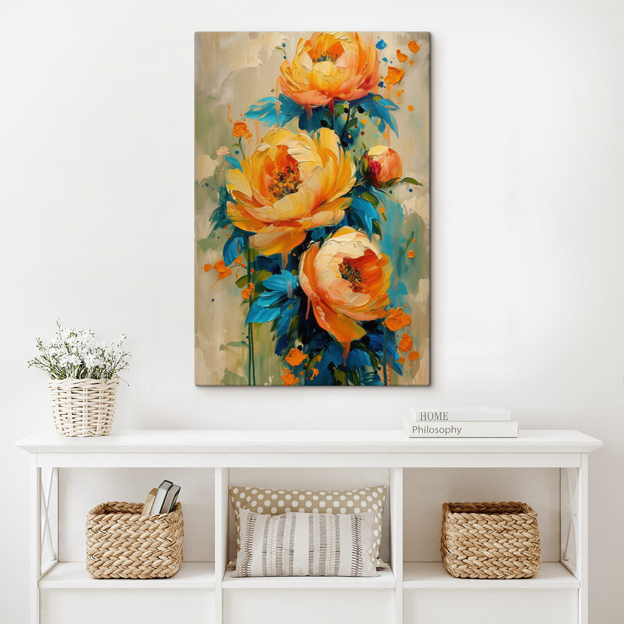 Illuminez votre espace avec cette impression sur toile vibrante représentant de magnifiques fleurs qui semblent avoir pris vie. L’explosion de couleurs – des jaunes doux, des oranges joyeux et des verts rafraîchissants – attire l’œil et donne à chaque pièce un aspect chaleureux et accueillant. Imaginez que vous sirotiez votre café du matin, que vous regardiez cette œuvre d’art et que vous ayez soudain l’impression de vous trouver dans un jardin ensoleillé plutôt que dans une cuisine. C’est comme si vous aviez un petit morceau de nature sur votre mur ! Parfait pour les chambres à coucher, les salles de séjour ou tout autre endroit qui a besoin d’une touche de gaieté. Laissez-le parler de votre amour pour une décoration unique !