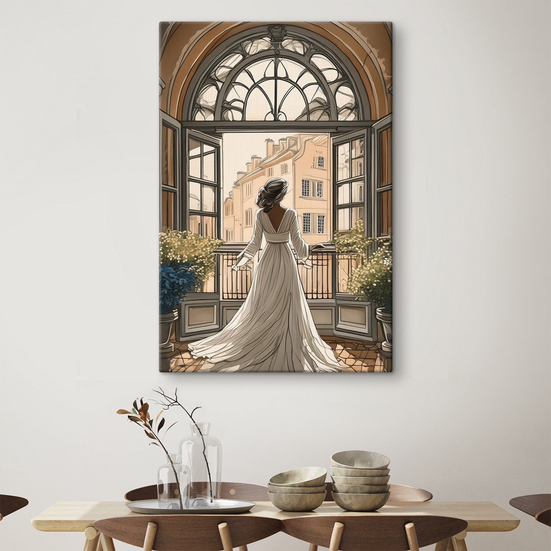 Avez-vous déjà rêvé d’entrer dans un moment intemporel de beauté et d’élégance ? Cette impression sur toile, appelée “Impressions sur toile s39480”, capture exactement cela. Imaginez une femme, élégamment drapée dans une robe fluide, regardant à travers une grande fenêtre cintrée. Le paysage urbain à l’extérieur, avec ses charmants bâtiments, murmure des histoires de romance et de nostalgie. Les teintes douces et les détails complexes vous donnent l’impression d’être à ses côtés, peut-être par un dimanche matin paresseux, et de vous imprégner de cette ambiance sereine.