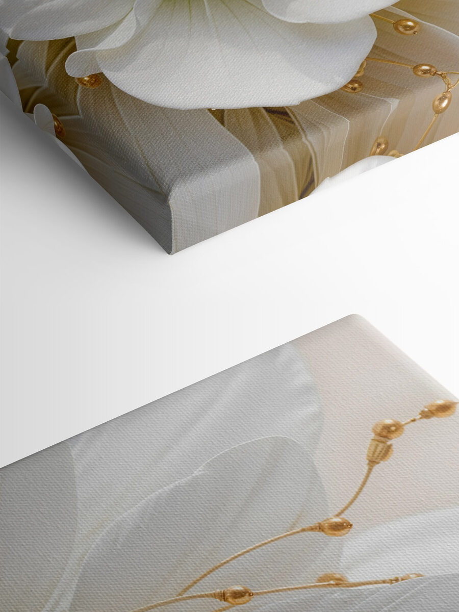 Imaginez que vous pénétrez dans une pièce où l’élégance rencontre la nature. C’est exactement ce que propose le “Tableaux Elegance in White and Beads” ! Cette superbe pièce présente de luxuriants pétales blancs qui semblent s’épanouir directement sur la toile, vous attirant dans sa beauté sereine. C’est comme si vous aviez un petit jardin dans votre maison, mais sans l’arrosoir.