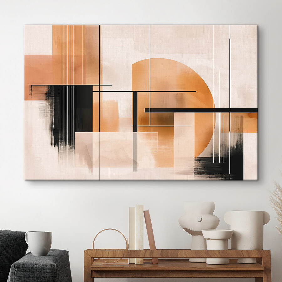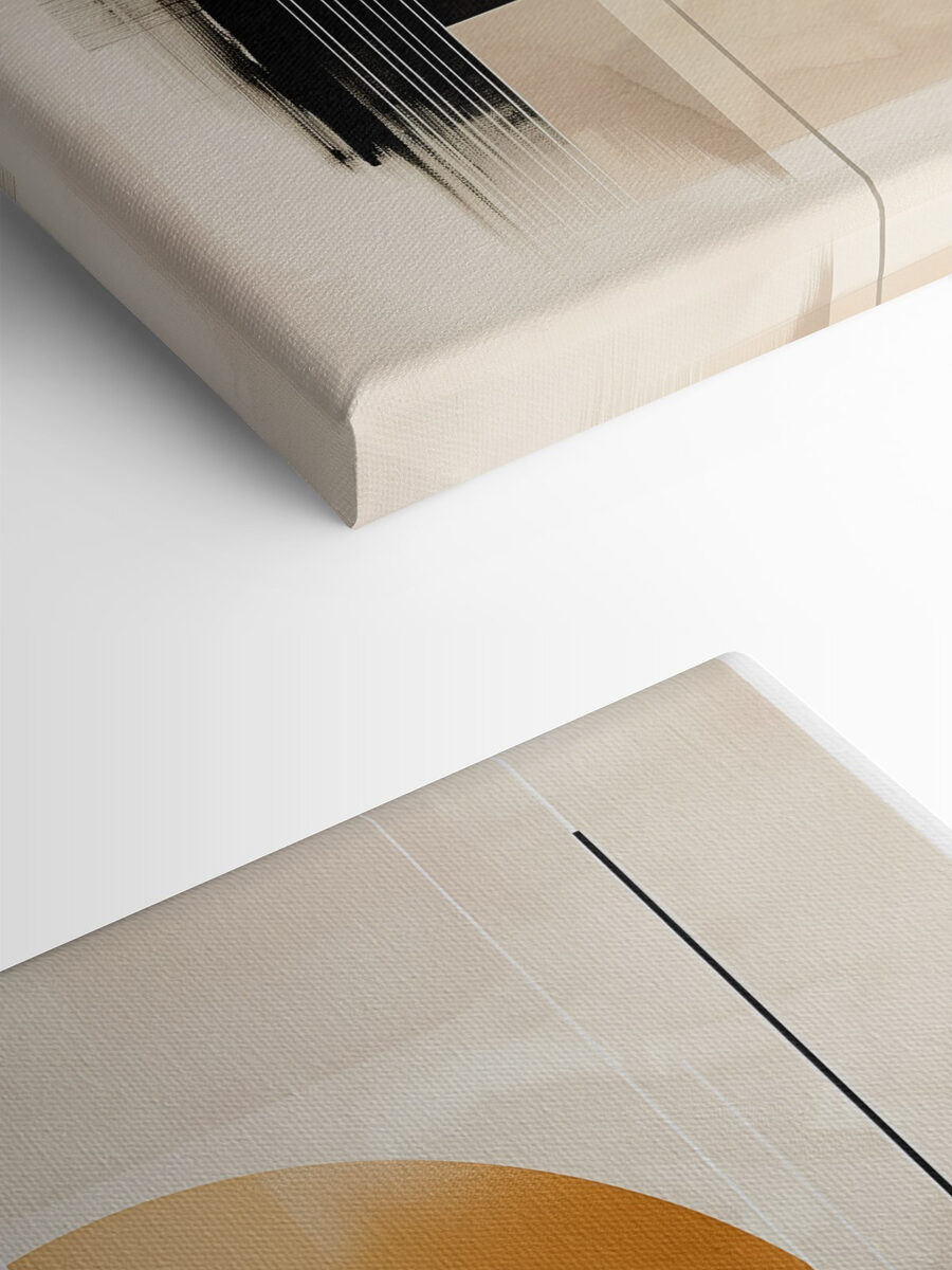 De plus, le mélange de beige doux et d’orange vibrant joue magnifiquement avec la lumière naturelle, créant ainsi une œuvre d’art en constante évolution. Une minute, il donne une impression de calme et de sérénité, l’instant d’après, c’est comme une explosion de créativité sur votre mur. Imaginez-vous en train de vous y installer avec un bon livre et une tasse de thé. C’est un petit coin de paradis de l’art moderne, parfait pour tous ceux qui souhaitent insuffler un peu de beauté abstraite dans leur vie de tous les jours.