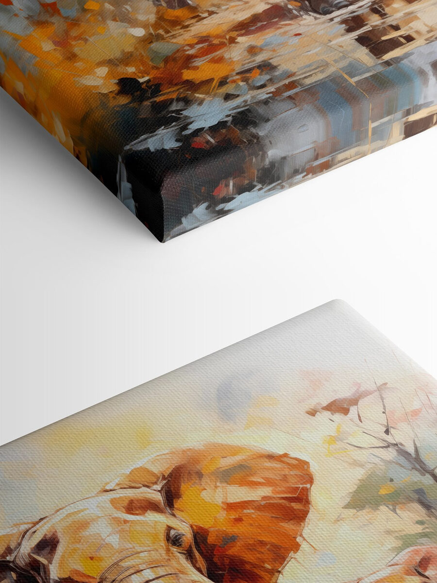 Imaginez que vous ayez dans votre salon un magnifique tableau de la vie sauvage africaine ! Voici “Impressions sur toile s39573” – une toile d’art extraordinaire qui ressemble plus à une aventure qu’à une simple décoration. Il représente de majestueux éléphants marchant dans un paysage de rêve, leurs tons de terre se mêlant à des éclats de couleurs vibrantes. On peut presque sentir le sol trembler sous l’effet de leurs pas puissants !