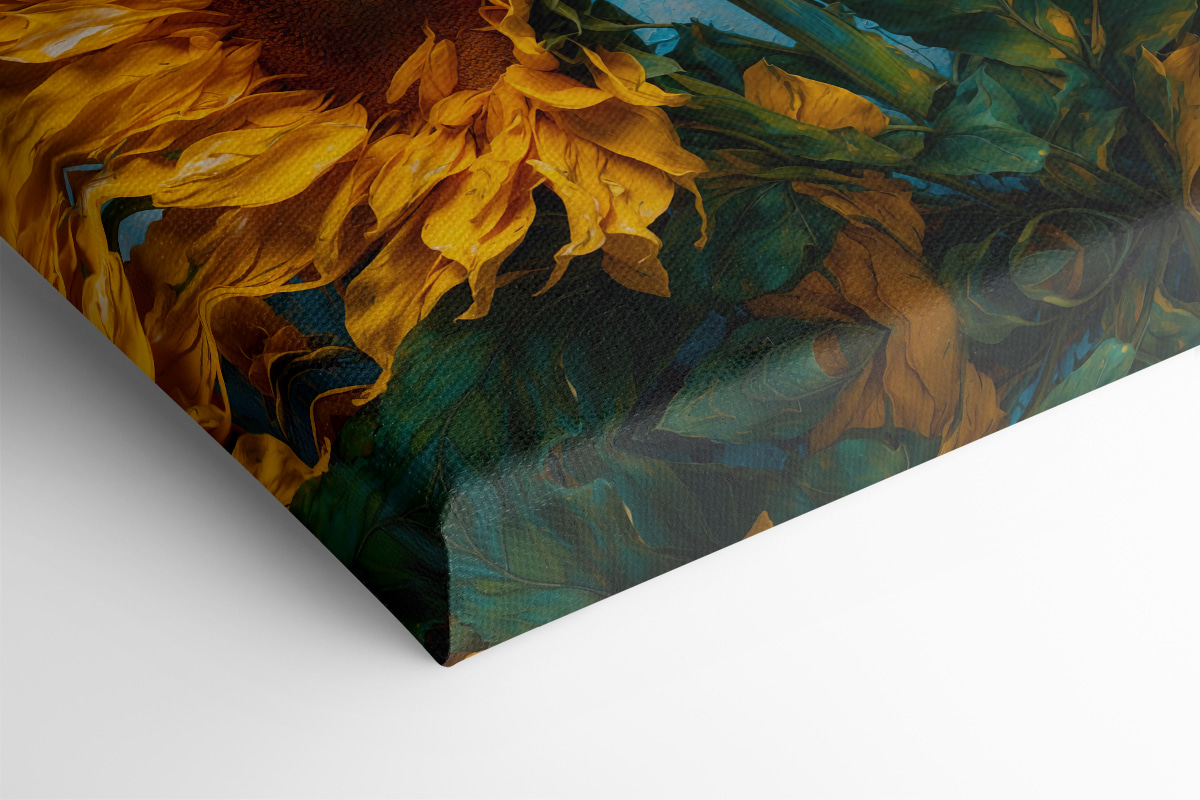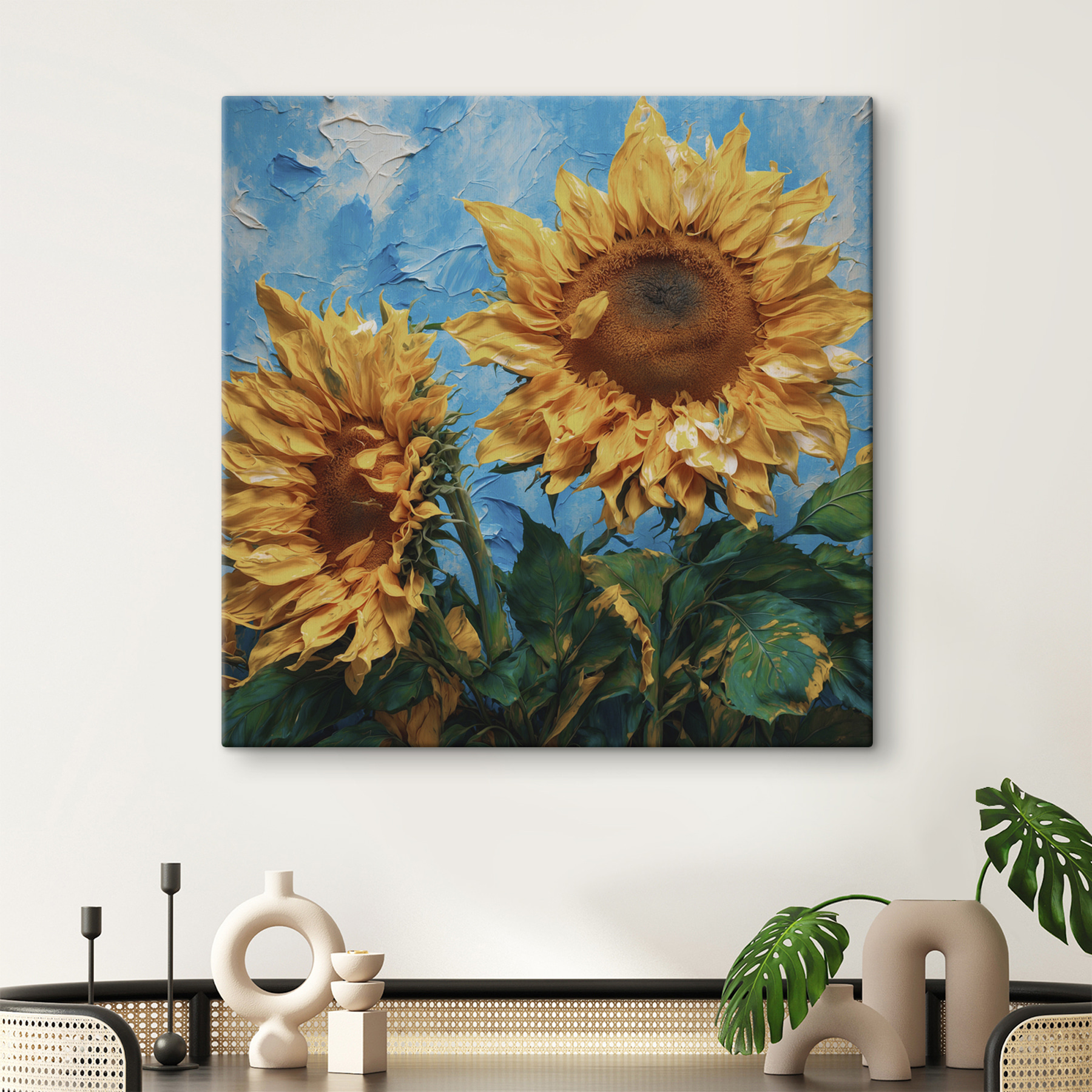 Illuminez n’importe quelle pièce avec cette impression sur toile de tournesols fleurissant sur un fond bleu vibrant. C’est comme une journée ensoleillée capturée sur votre mur, insufflant énergie et gaieté à votre espace. Imaginez que vous passiez devant et que vous ressentiez une petite étincelle de joie à chaque fois que vous l’apercevez. Parfaites pour un coin confortable ou même pour une déclaration audacieuse dans un salon, ces fleurs rayonnent de chaleur. De plus, elles rappellent que même les jours nuageux, il y a toujours quelque chose de lumineux et de beau à attendre. Qui n’aimerait pas avoir une touche du charme de la nature chez soi ?