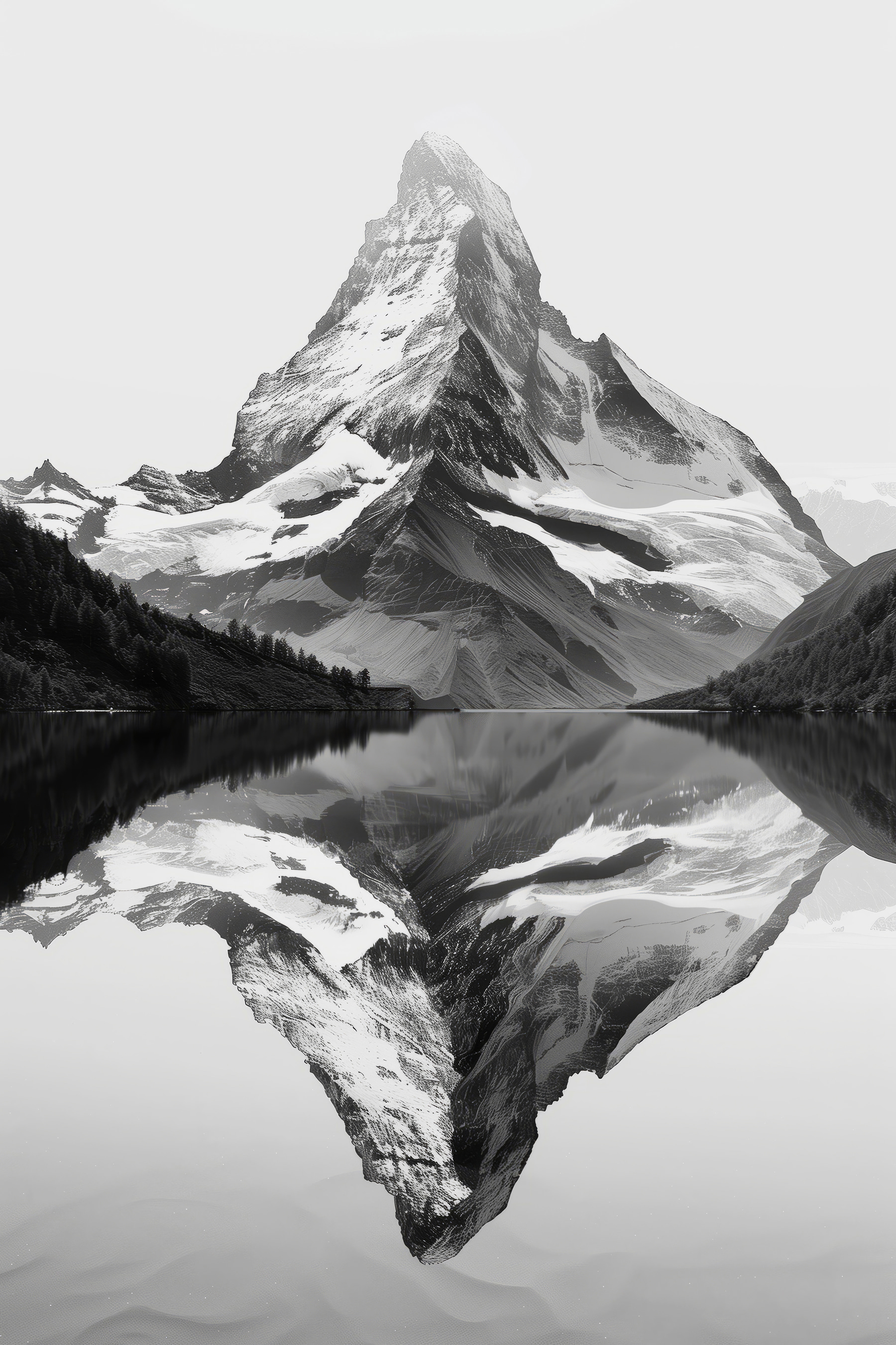 Des montagnes se reflétant parfaitement sur l’eau ? De la magie à l’état pur. L’ambiance classique du noir et blanc donne une impression de calme et de sophistication à n’importe quel espace. Vous pouvez presque sentir l’air frais de la montagne et entendre les douces ondulations de l’eau. Imaginez ce tableau dans votre salon ou votre chambre à coucher : c’est comme si vous aviez une fenêtre sur la nature, directement depuis votre canapé !