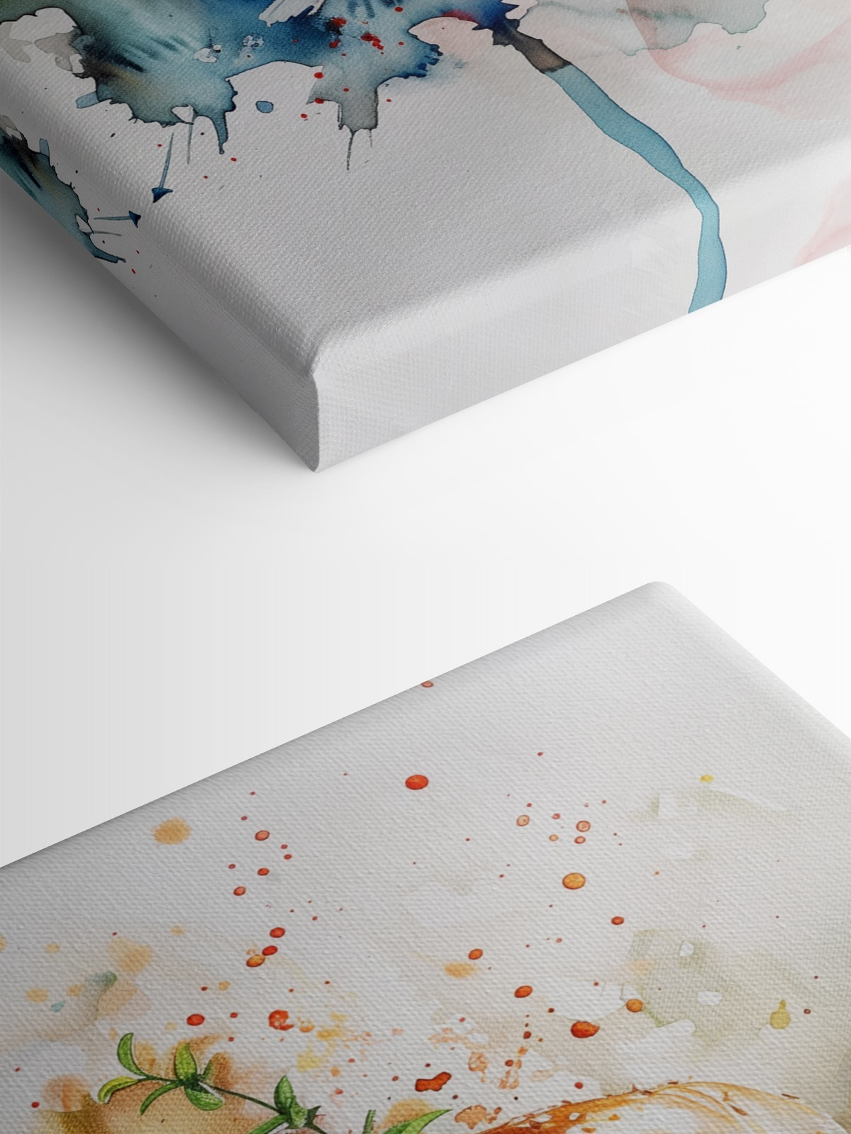 Il est parfait pour tous ceux qui apprécient l’art de la bonne chère (sans jeu de mots !) et qui aiment les décors ludiques. Que vous soyez un as de la cuisine ou quelqu’un qui aime simplement imaginer sa nourriture comme une œuvre d’art, cette toile est faite pour vous. De plus, elle est classée dans les catégories Beaux-arts, Nourriture et boissons et Aquarelle – c’est donc comme si elle avait un doctorat en beaux-arts. Placez-la dans votre cuisine ou votre salle à manger et regardez-la illuminer l’espace – qui aurait cru que la nourriture pouvait être aussi inspirante ? Profitez des délicieuses vibrations !